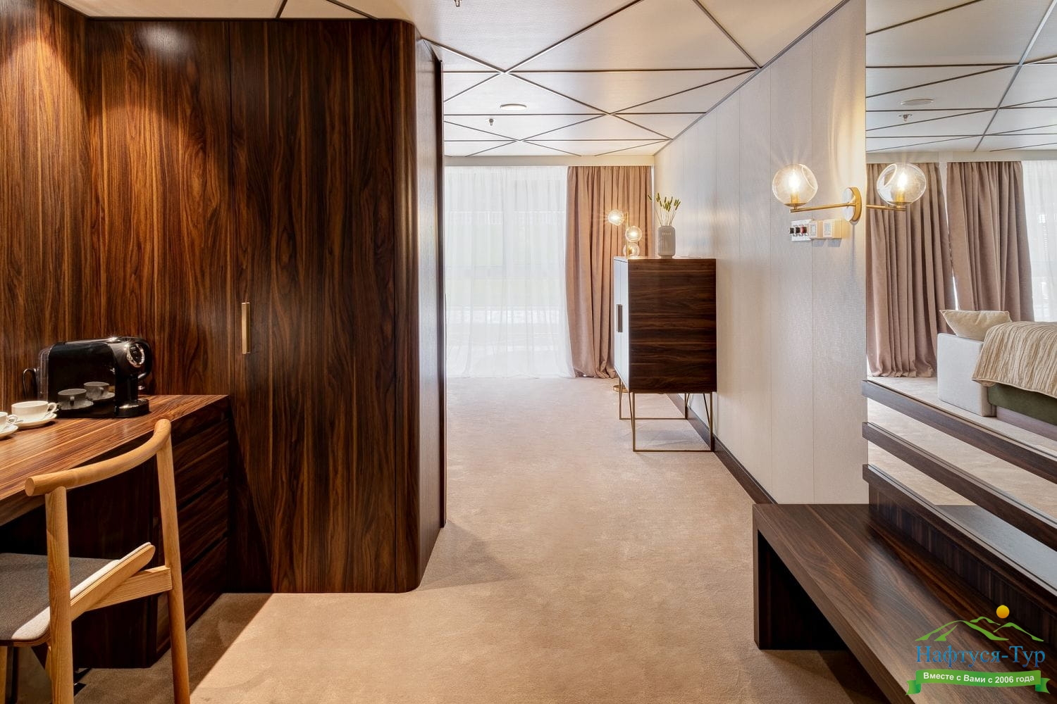 Люкс двухместный - Просторные каюты с двуспальной кроватью и мягкой зоной для отдыха
