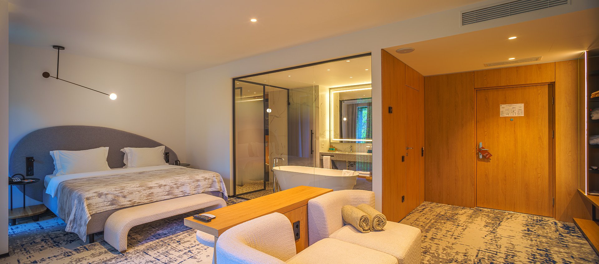 Отель Karmann’s hotel – Yantar Hall – дизайнерский отель, открытый в 2021 году, самый большой и современный в Светлогорске, уютно обосновавшийся посреди соснового леса. Панорамные окна позволяют ощущать свою причастность к целительной приморской природе. Отель удобно расположен на центральной улице Светлогорска, рядом со знаменитым театром Янтарь-Холл и Органным залом, в двух минутах ходьбы от светлогорского променада, приводящего к пляжу.