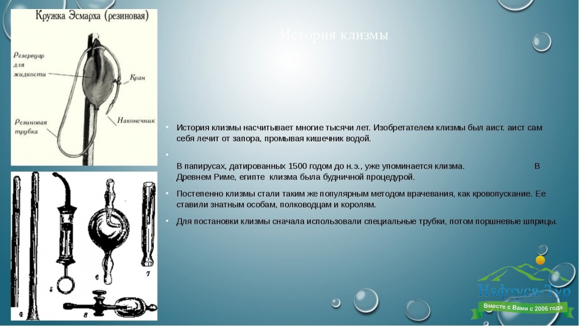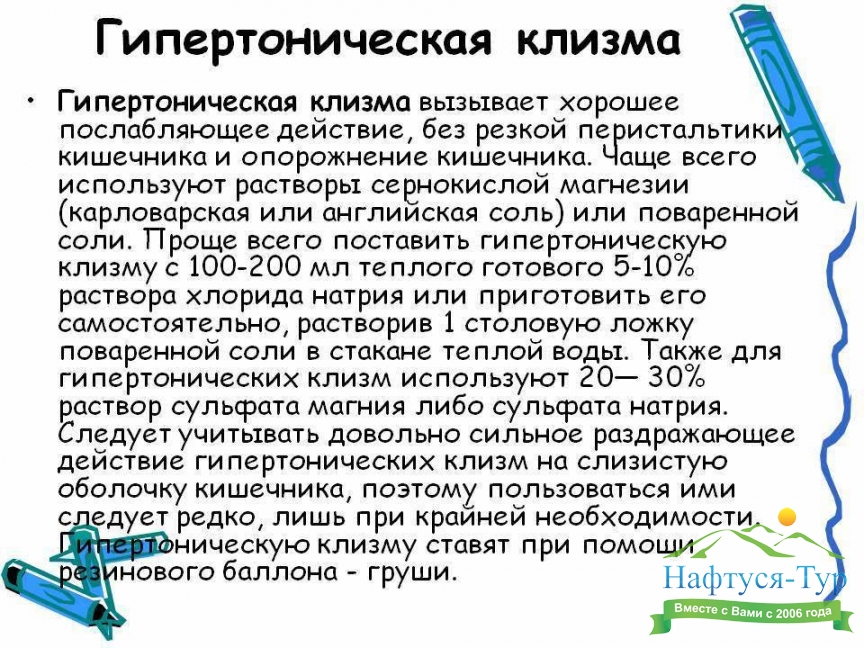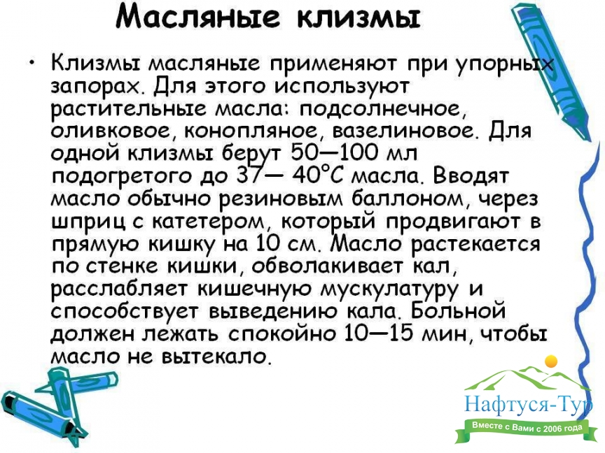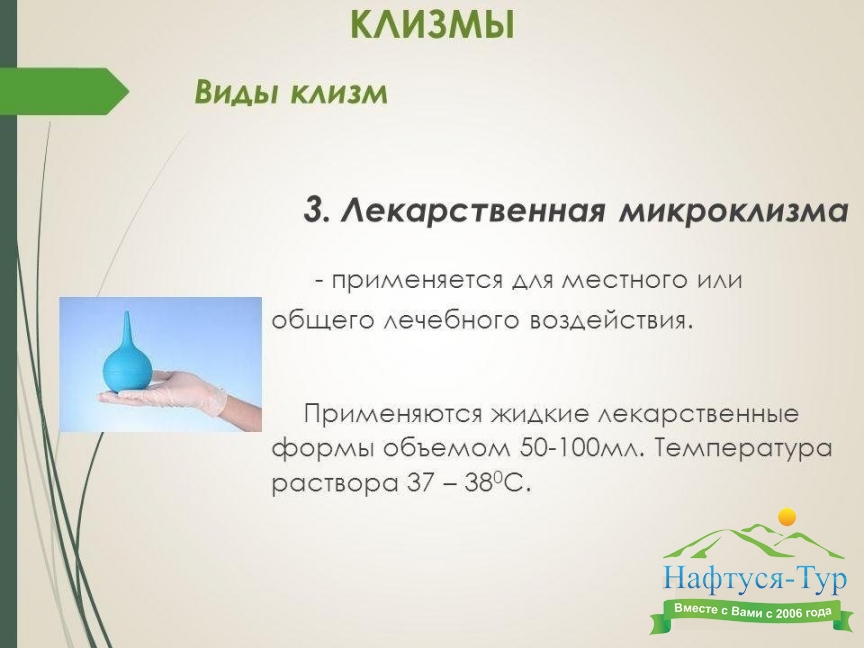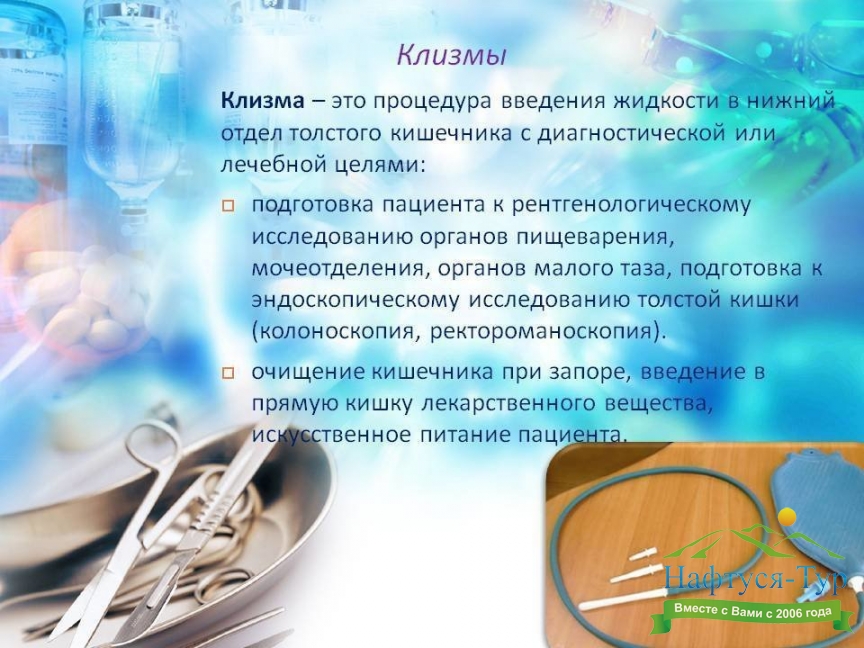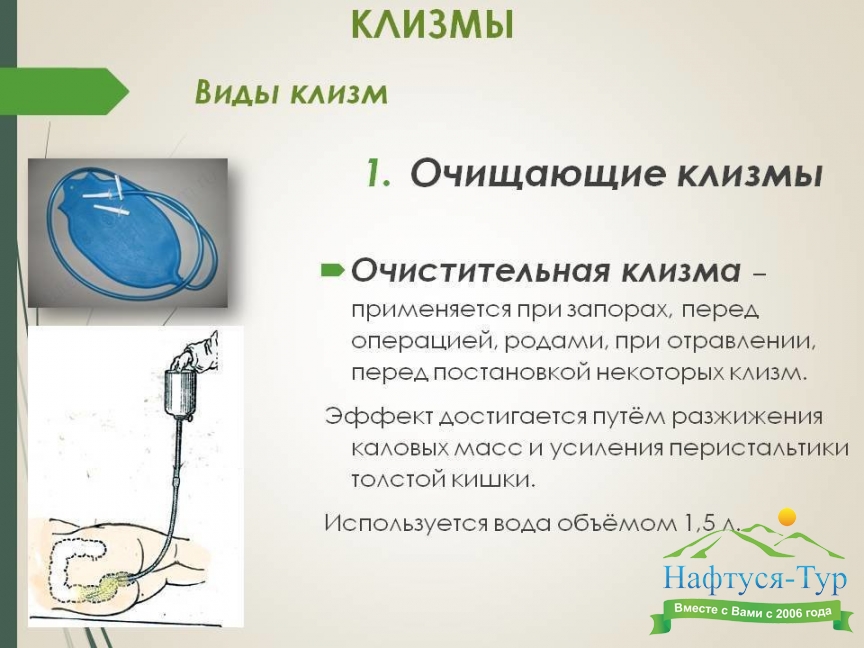 Клизмы, подбор санаториев и пансионатов