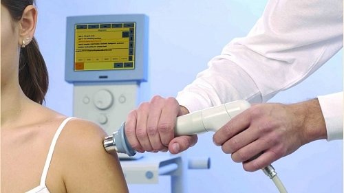 Ударно-волновая терапия (УВТ) – методика лечения при помощи волн инфразвуковой (ниже порога слышимости для человека) частоты. Генерируемые специальным аппаратом ударные акустические волны направляются на пораженные места, своим воздействием они разрушают отложения кальция и других солей, значительно увеличивают кровоток в капиллярах и небольших сосудах, что обеспечивает вымывание разрушенных отложений. Ударно-волновая терапия имеет высокую клиническую эффективность – у более чем 90% пациентов наблюдается заметное уменьшение болей и отеков, повышение подвижности, причем эти эффекты имеют большую продолжительность.