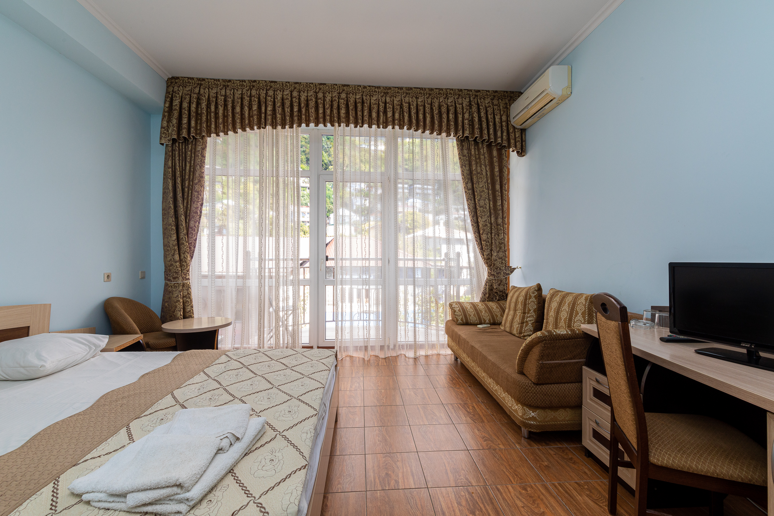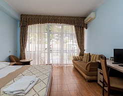 Останавливалась в данном отеле с мужем. Отлично провели время. Очень хороший отельчик. Расположен он в центре старой Гагры. Есть прекрасные номера с видом на горы и с видом на море. Комната просторная, везде порядок и чистота.