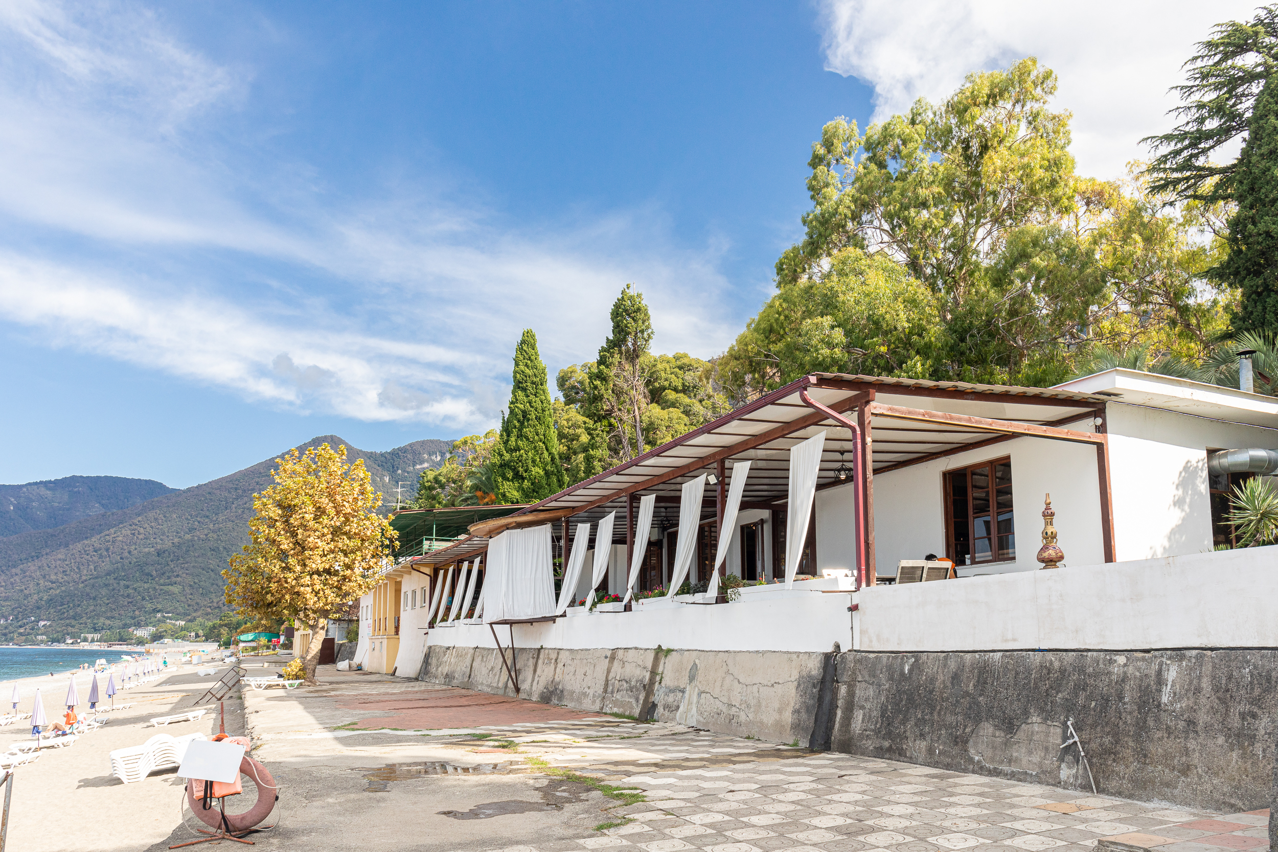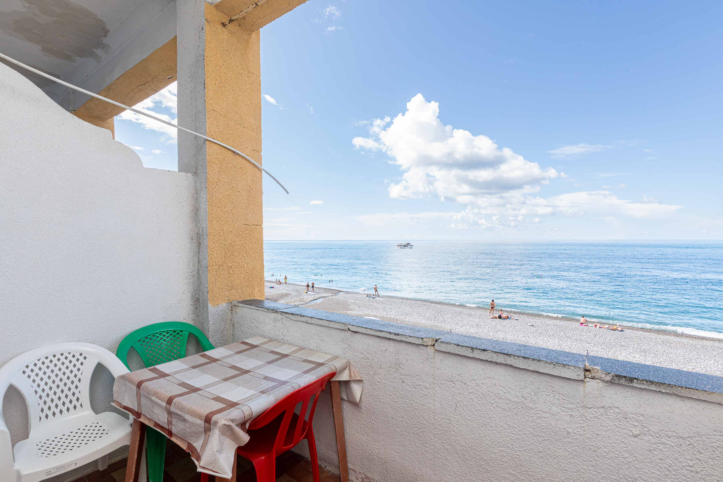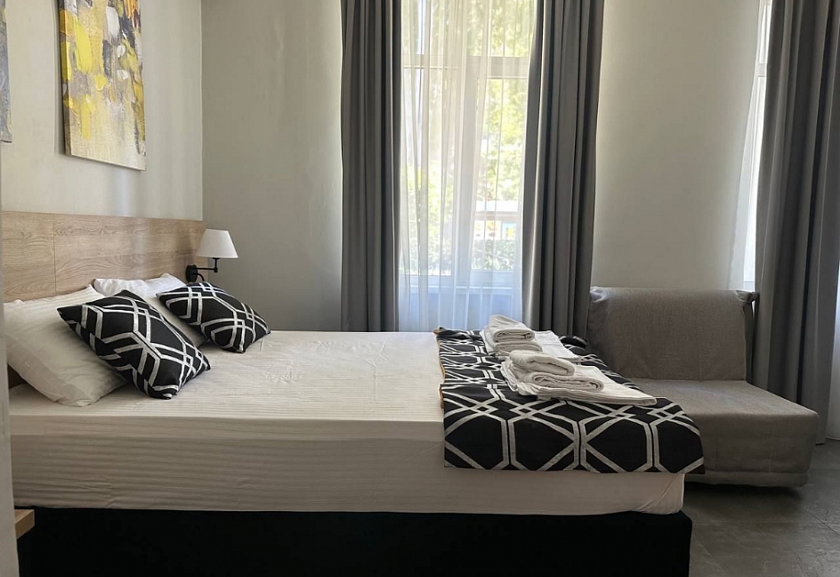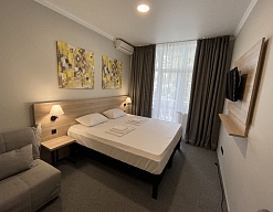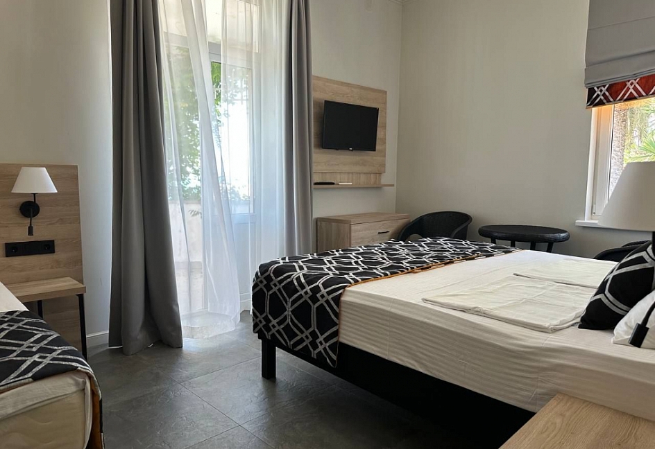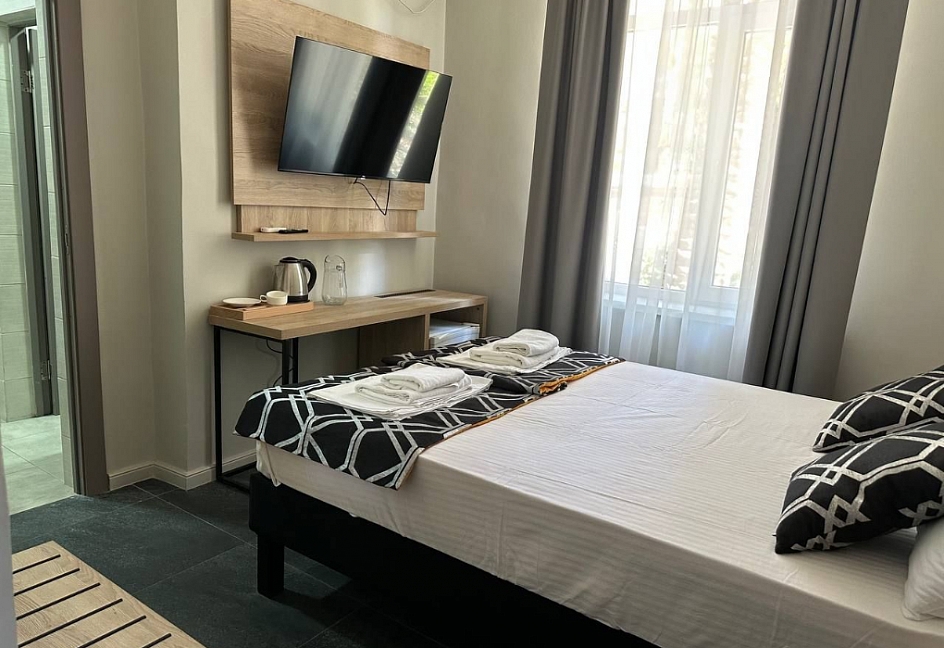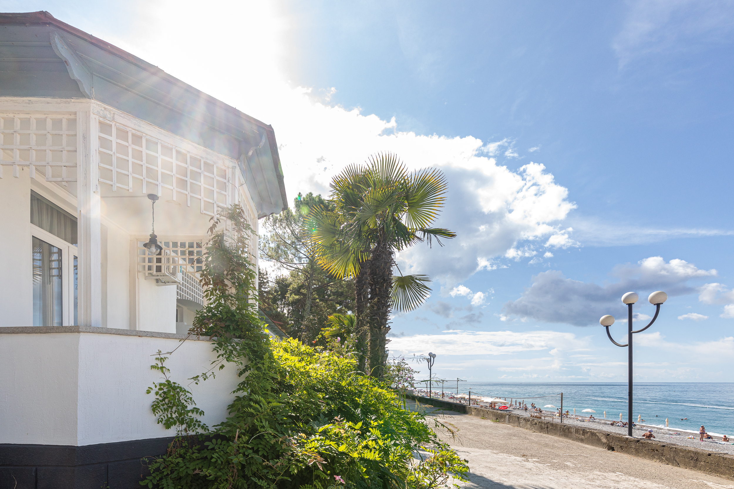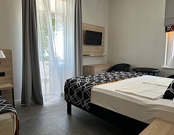Расположение: Первая линия у моря (50 м до пляжа), 60 м до центра, 40 км до аэропорта Адлер