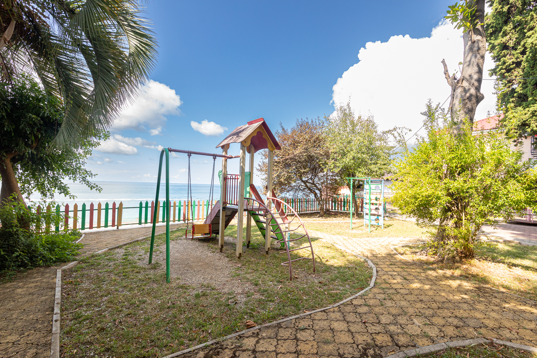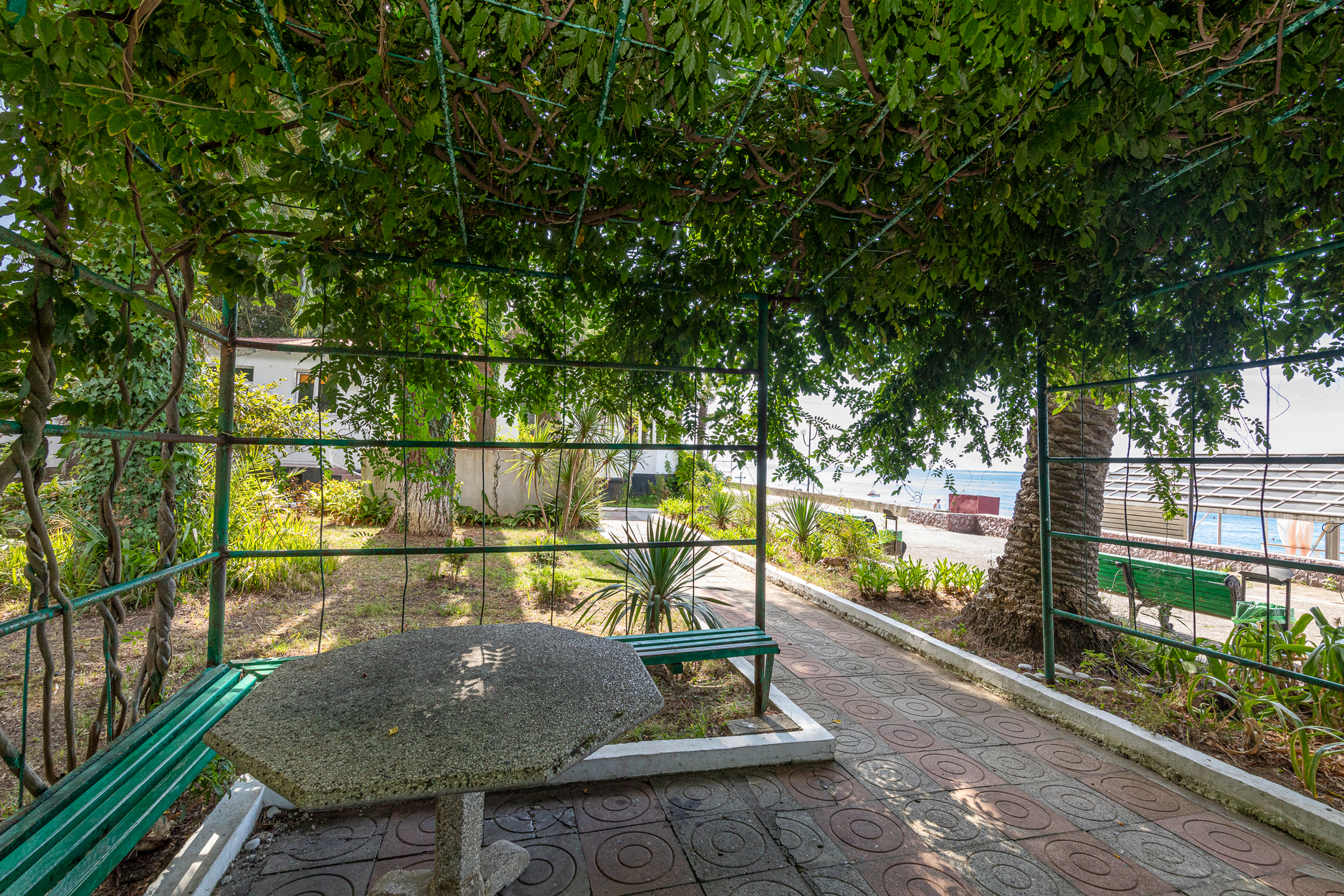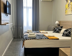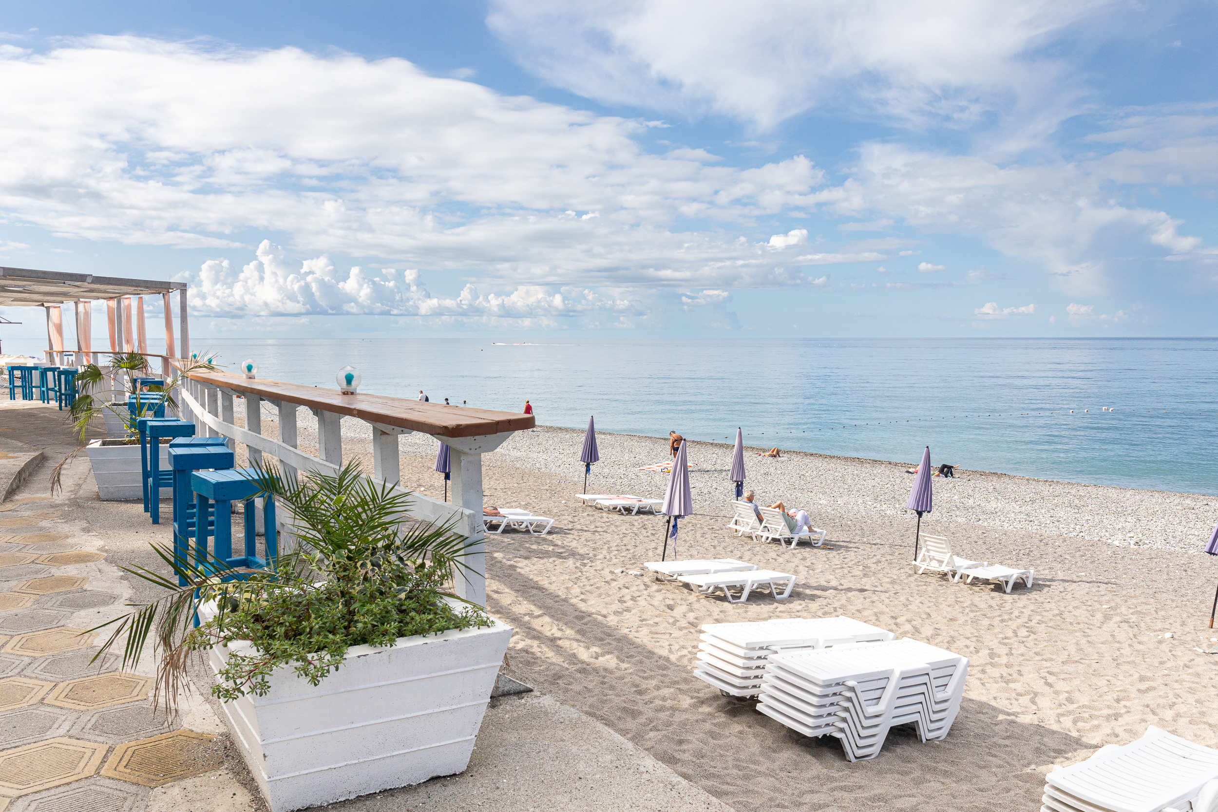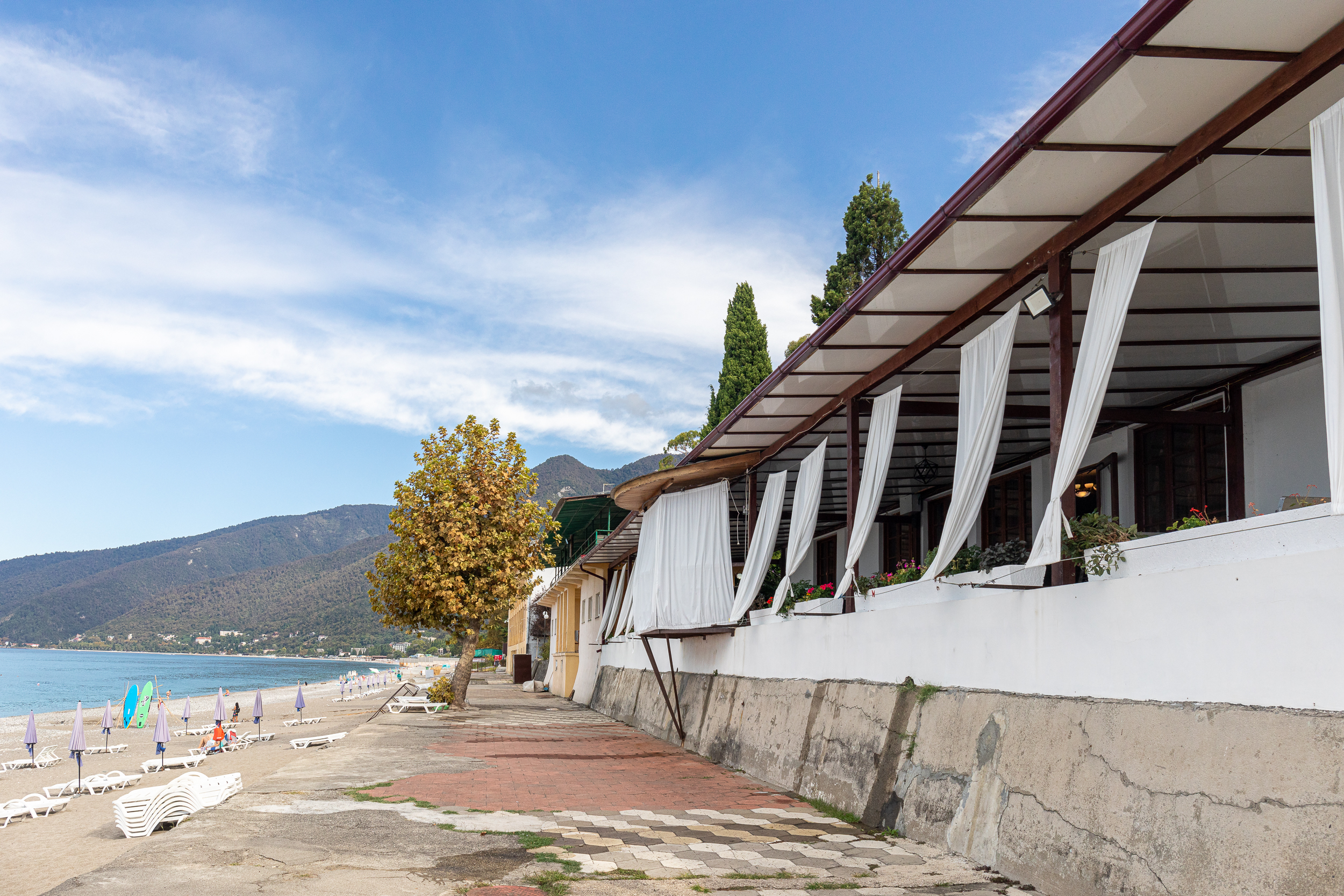 Расположение: Первая линия у моря (50 м до пляжа), 60 м до центра, 40 км до аэропорта Адлер