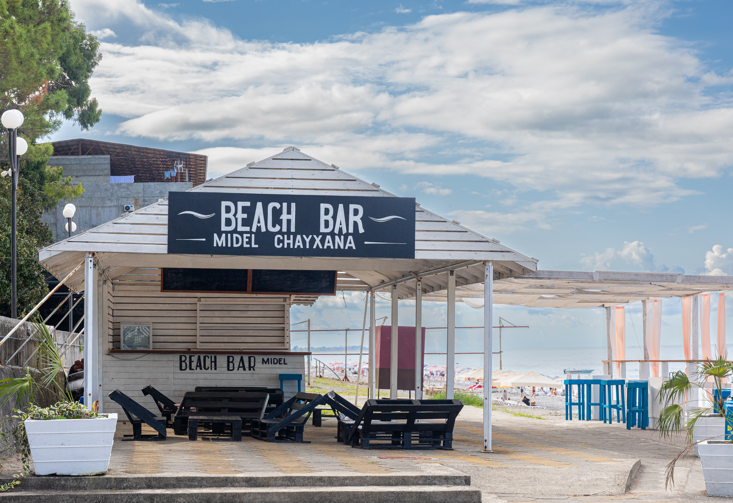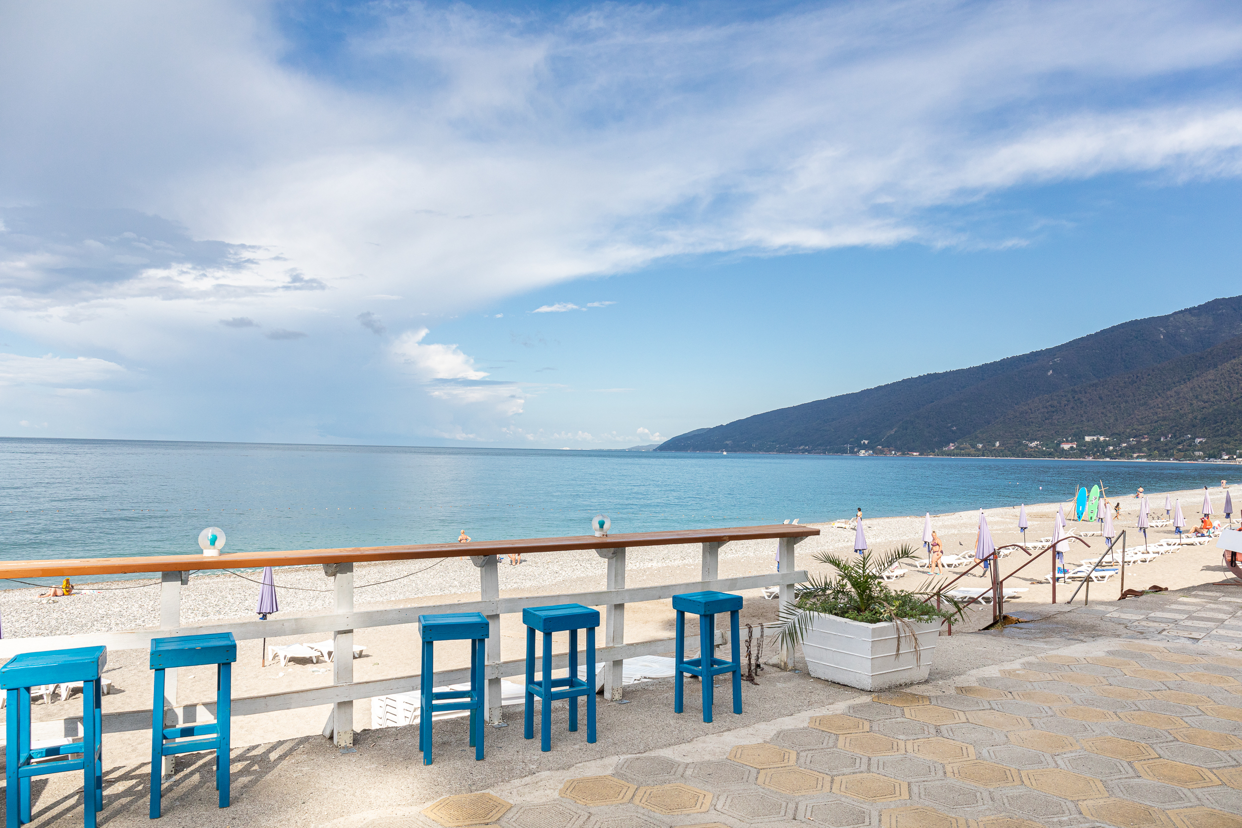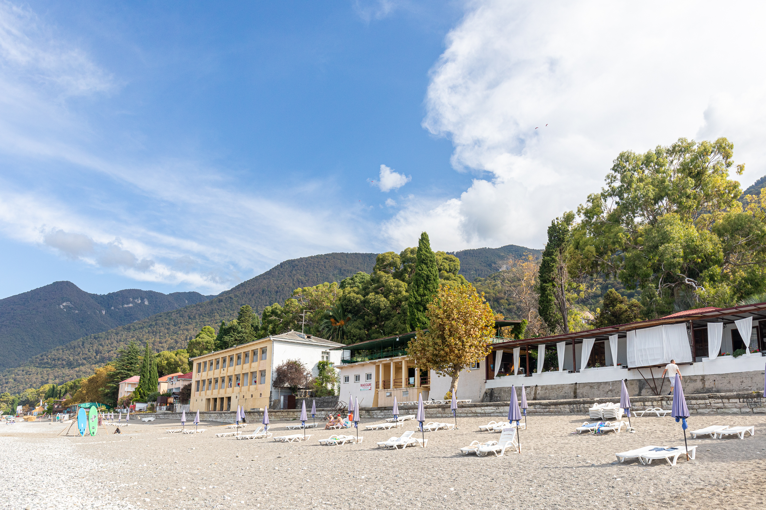 - услуги на пляже: шезлонги, зонты