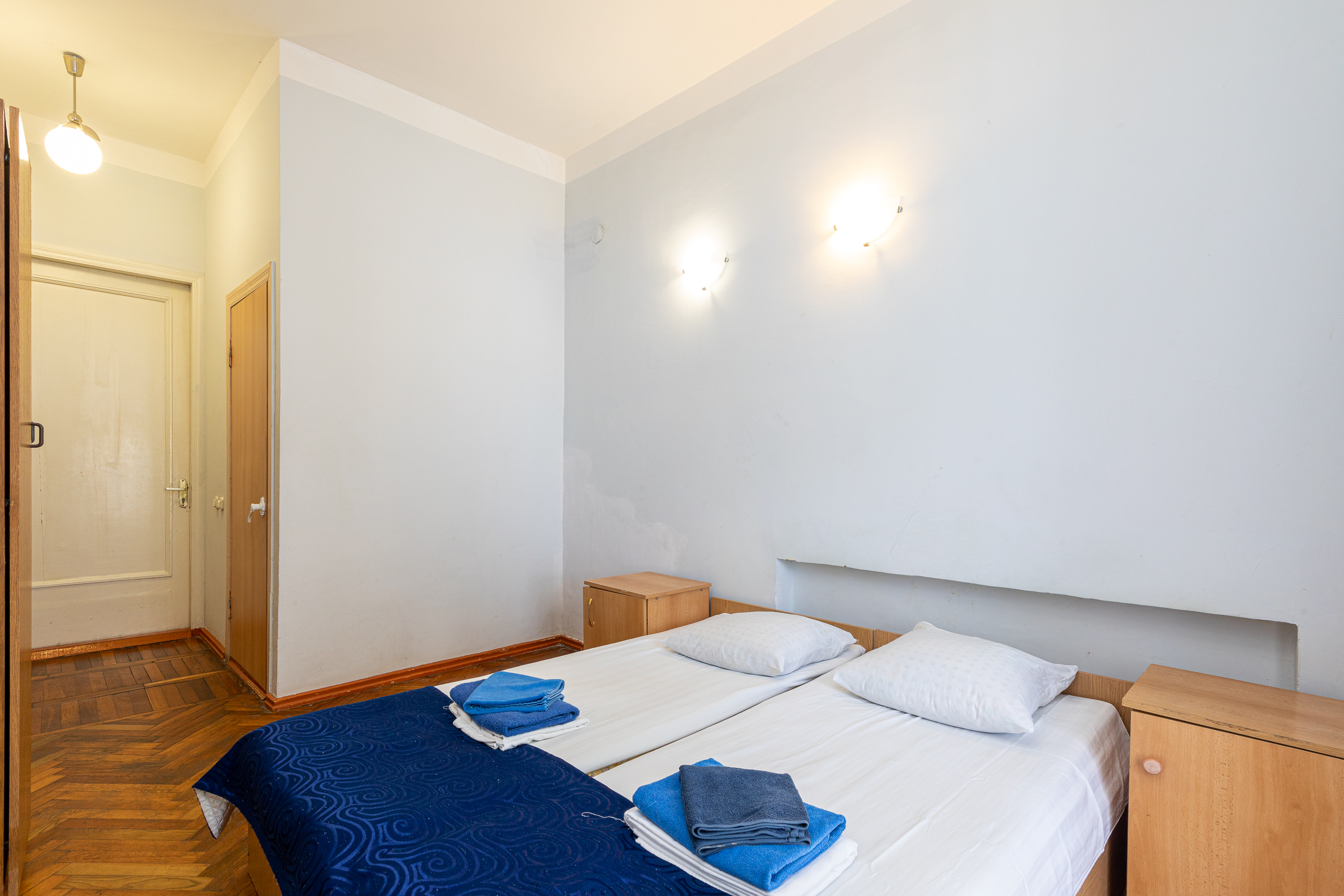 кровати односпальные /одна двуспальная кровать, прикроватные тумбочки, стол, стулья, тумба, шкаф