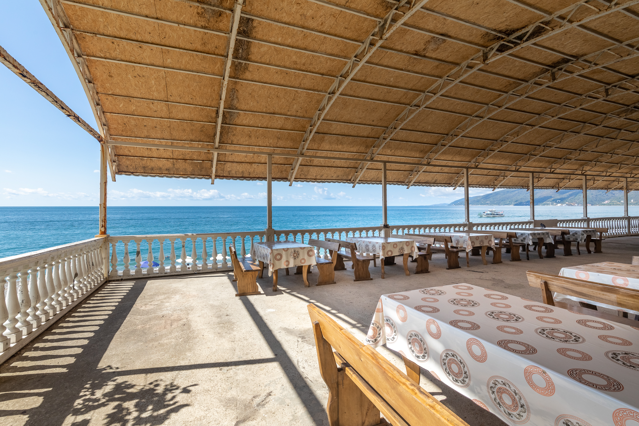 Только что вчера прилетели из Абхазии, жили в Руслане неделю...сначала заселились в номер с видом на горы, потом перешли в номер с видом на море...И тот и другой вид просто супер! Большое панорамное окно вовсю стену, лежишь на кровати и смотришь как плещутся волны.