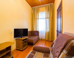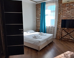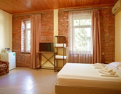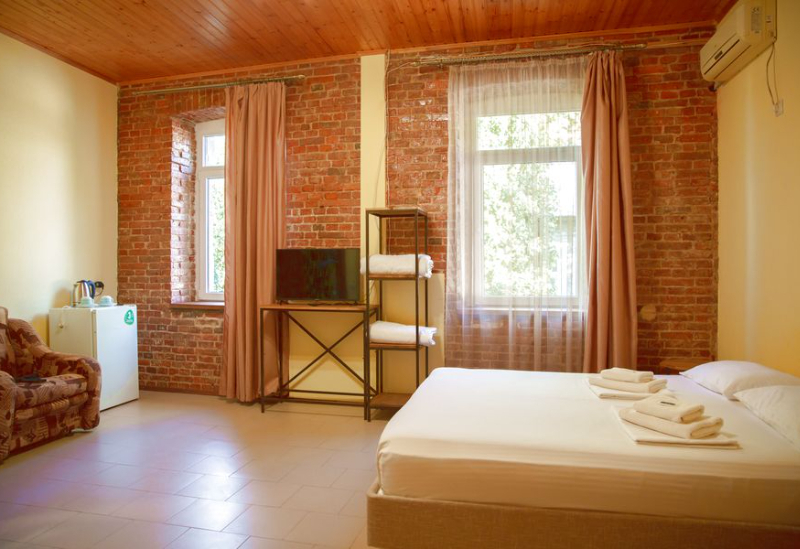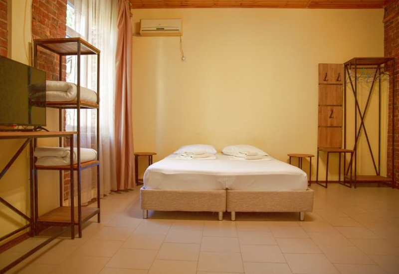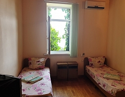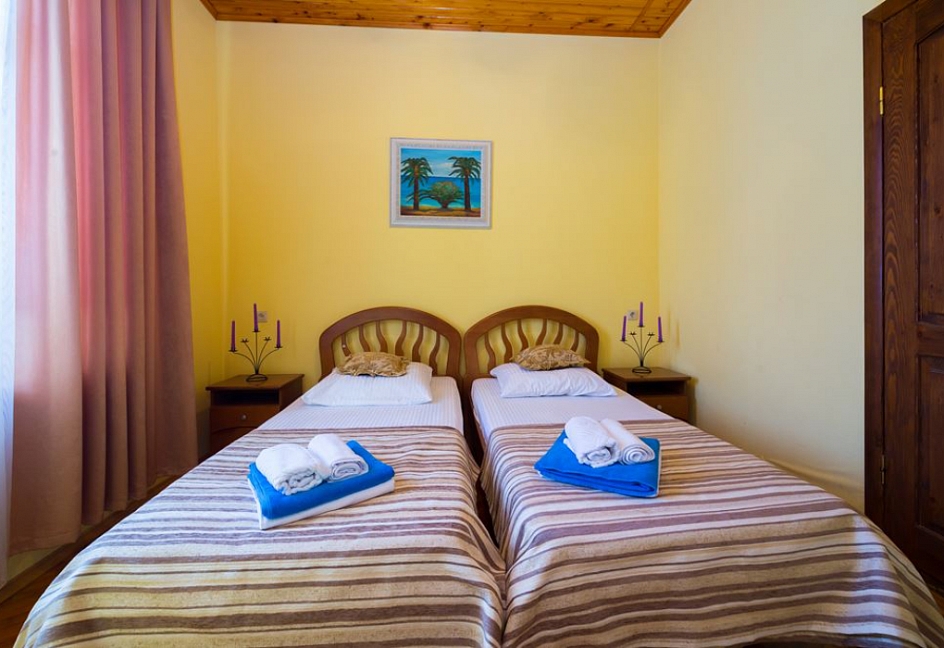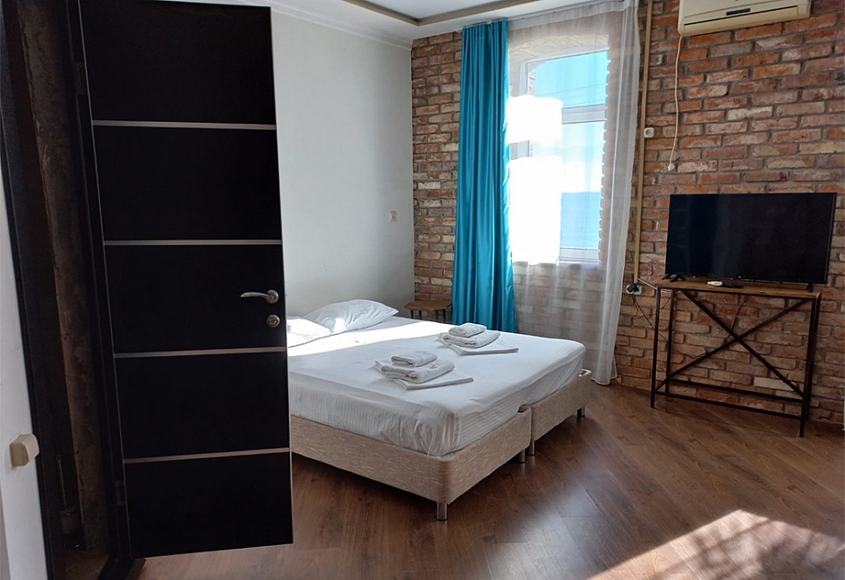 Расположение: Первая линия у моря (20 м до пляжа), 100 м до центра, 100 км до аэропорта Адлер