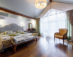 вешалка, зеркало, кресло, кровать двуспальная, прикроватные тумбочки, стол, шкаф
