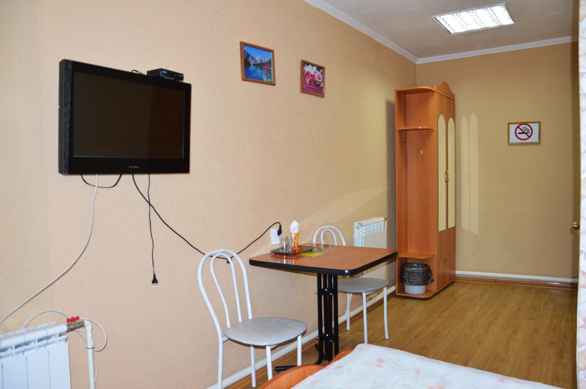 В нашем уютном номере в качестве оснащения мы предлагаем кровать односпальную (130*200см), комод, журнальный столик, обеденную зону, бра, также душевую и туалет