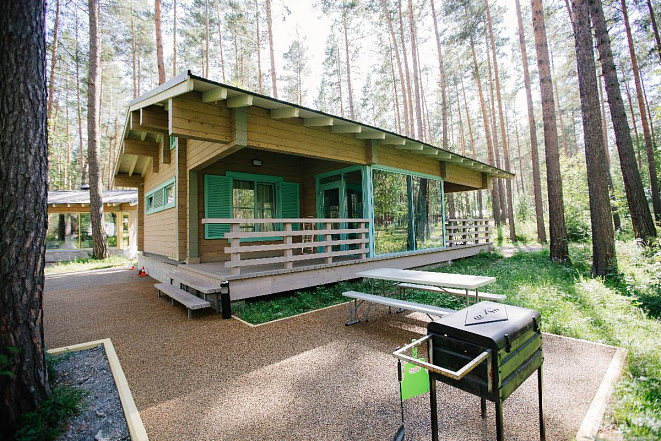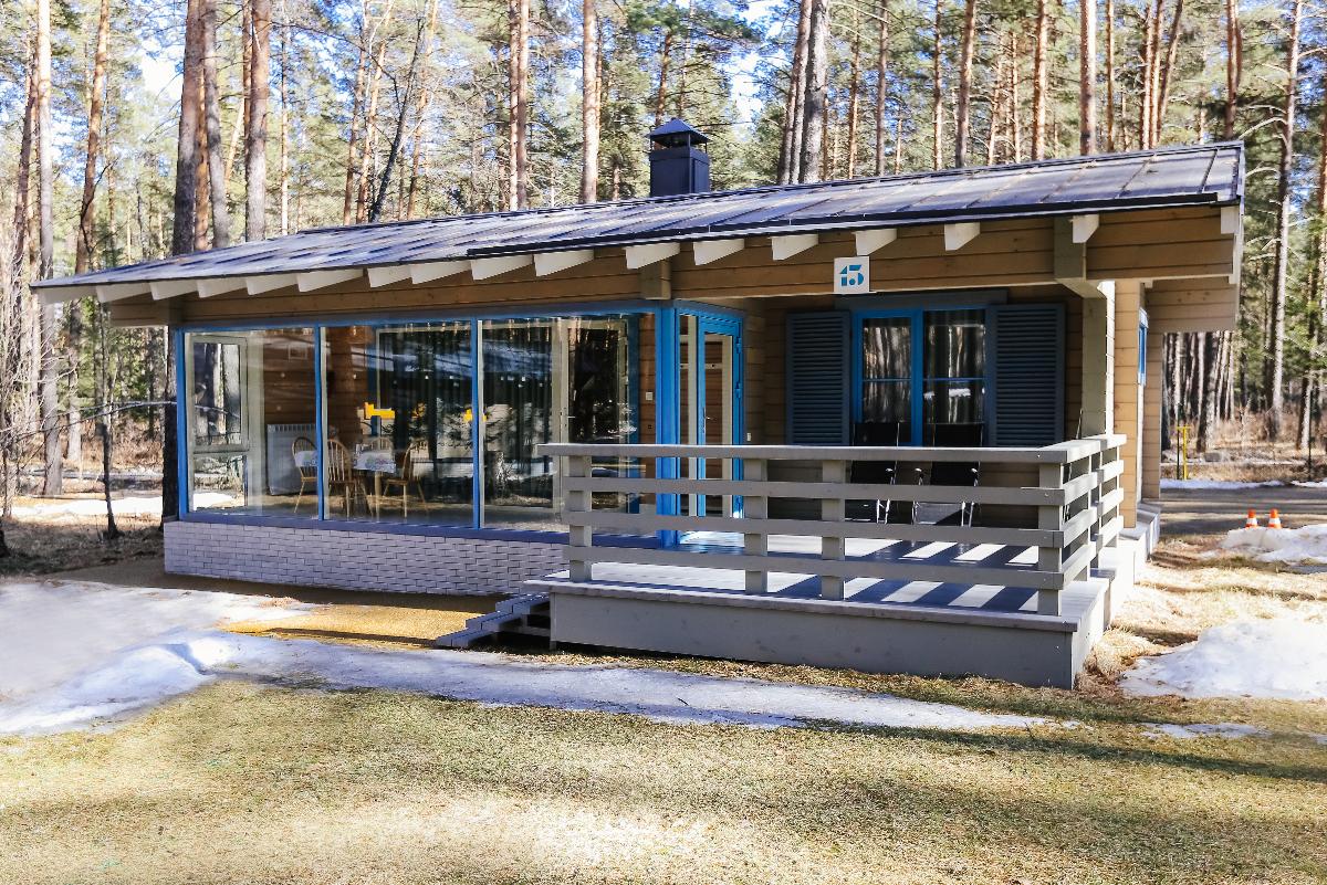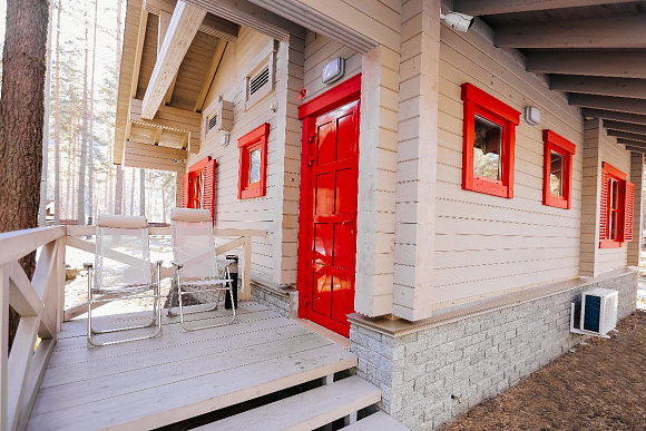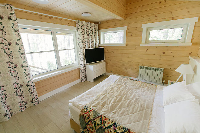 Просторный Коттедж класса "Де Люкс" с двумя спальнями, кухней и теплой верандой с панорамными окнами.