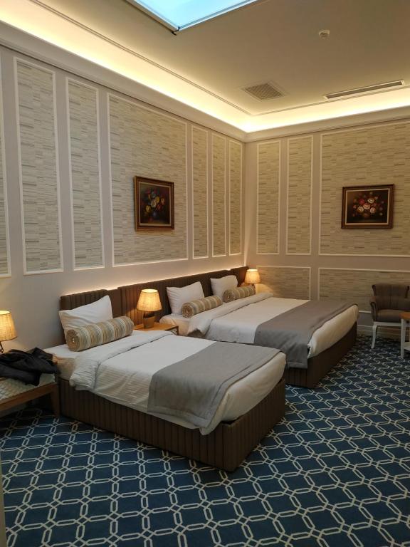 Отель разместился в трехэтажном особняке с богатым интерьером, все полы в нем покрыты мраморной плиткой, арочные своды украшают мерцающие люстры, а полуциркульные панорамные окна с мелкой расстекловкой обрамлены растительным поясом. Гостей ожидают стильные комфортабельные номера разной категории, есть бюджетные варианты уютных комнат без окон, а есть просторные номера с панорамным видом на город. Везде имеется индивидуальный санузел с душем или ванной, кондиционер, плазменный телевизор и другая бытовая техника.