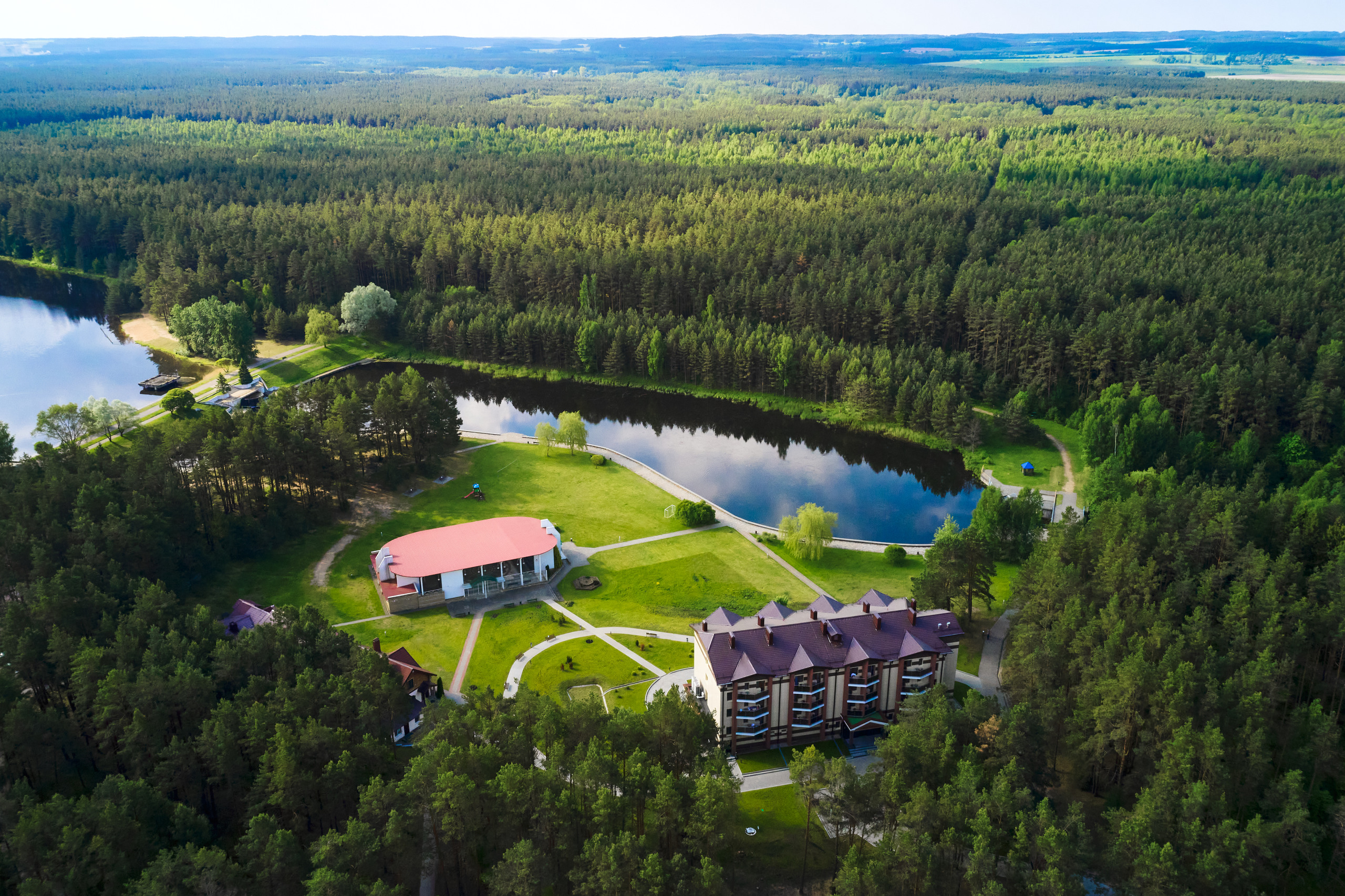 Самолетом до аэропорта г. Минска, далее с автовокзала «Центральный» (г. Минск, ул. Бобруйская, 6) на маршрутном такси «Минск-Сан. Радон» или автобусе «Минск-Сан. Радон».