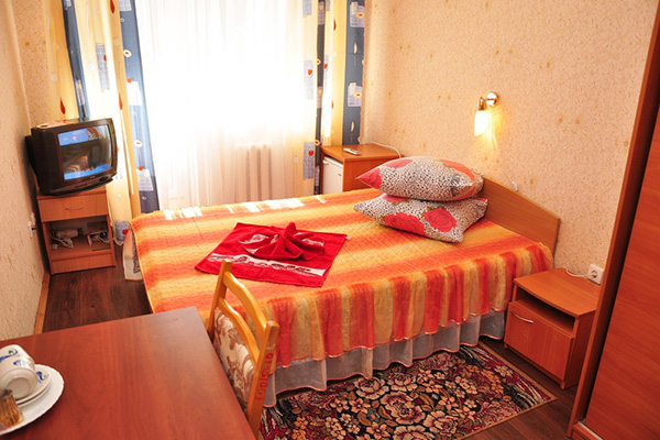 Мы остались не довольны. Возможно в номерах категории Люкс и комфортно проживать, но номера Стандарт - это ужас: грязные покрывала, гардины, шкаф (в нашем номере) жутко старый, разломанный и скрипучий, без полок, только штанга для плечиков, номер тесный для двоих.