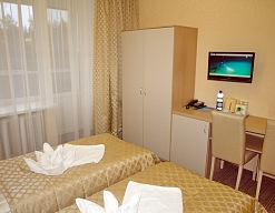 кровати односпальные /одна двуспальная кровать, прикроватные тумбочки, стол, стулья, тумба, шкаф
