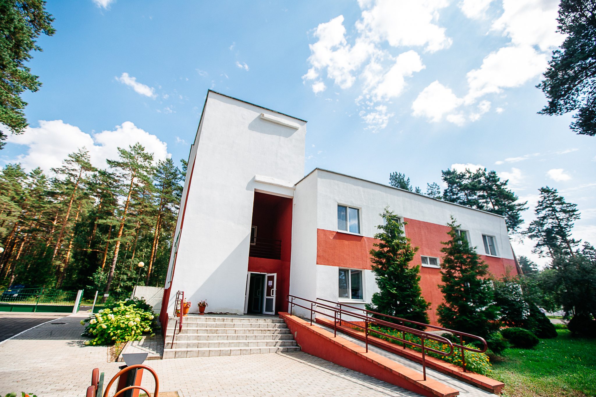 Место расположения санатория в сосновом бору на берегу реки Вилия и естественного водоема, питаемого родниками, а также значительное удаление от промышленных предприятий, автомобильных и железнодорожных трасс определяет щадящее-тренирующее воздействие климатических условий на здоровье отдыхающих.