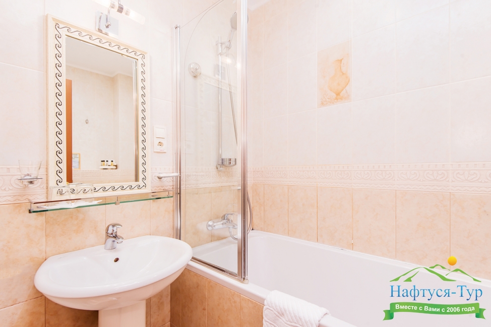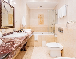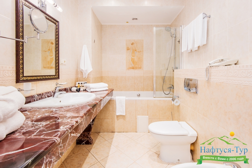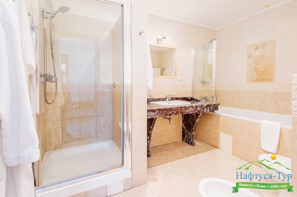 2 санузла, биде, с ванной и душевой кабиной, тапочки, фен, халат