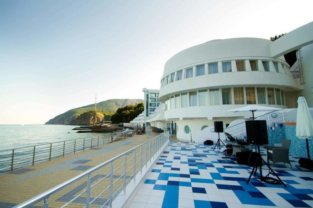 Уютное месторасположение между горой Аю-Даг и мысом Плака, уникальное строительно-архитектурное решение создают все условия для полноценного отдыха.