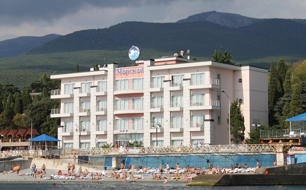 Отель "Морской" расположен в 350 метрах от отеля "Аквапарк" ближе к Профессорскому уголку, вдоль благоустроенной набережной, в 10 метрах от моря и включает в себя 46 комфортабельных номеров 27 из которых с видом на море, 18 номеров с видом на тихий хвойный парк.