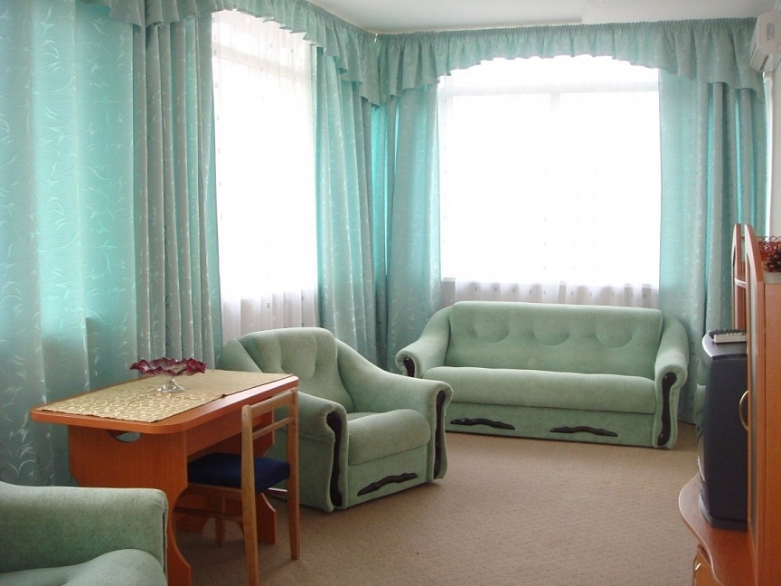 Еще если вы едите туда парой или просто хотите тихо спокойно отдохнуть и выспаться, увы, я вынуждена вас расстроить, у вас этого не получиться, этот пансионат рассчитан для людей с серьёзными стальными нервами, ибо в 7-8 утра выбегаю дети других семей на улицу и начинаю играть, орать, визжать и заниматься другими повседневными делами, и это будет происходить под вашими окнами (далеко не шумоизалиционными). А если вы решили приехать со своими детьми, я вас также огорчу, в данном пансионате хоть и указанно что есть анимация и другие развлекательные услуги для детей, НО по сути их там просто нет! Указанный теннисный стол просто кривой и на нем невозможно играть, аниматор очень странный, и вряд ли я бы доверила бы ему своего ребенка. На территории больше нечего нет, нет площадки для игр и вообще дворик который прилагается к данному пансионату очень маленький, с какой-то стройкой и дырами в заборе.