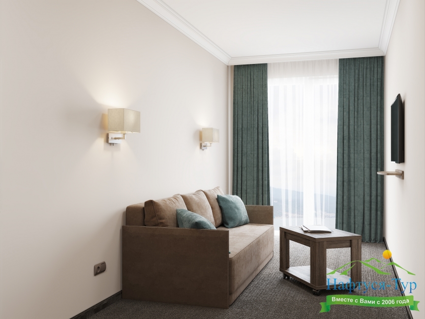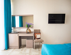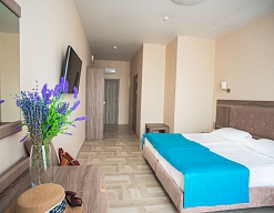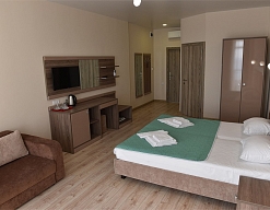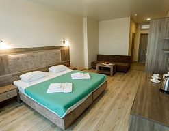 Приятный отель с красивым видом на море, первая линия, нас было три человека, жили в номере люкс. Персонал молодцы стараются, территория не большая, но аккуратная. Есть парковка для авто, бассейн, лаунж-зона, детские зоны.