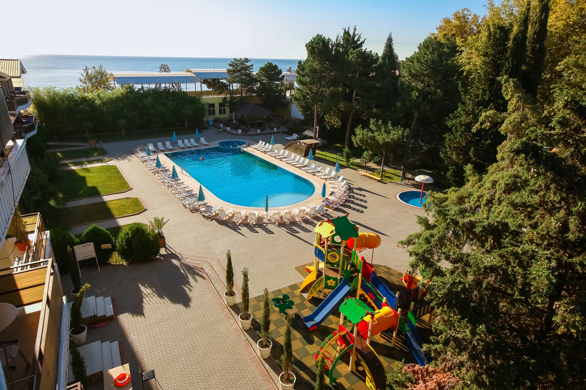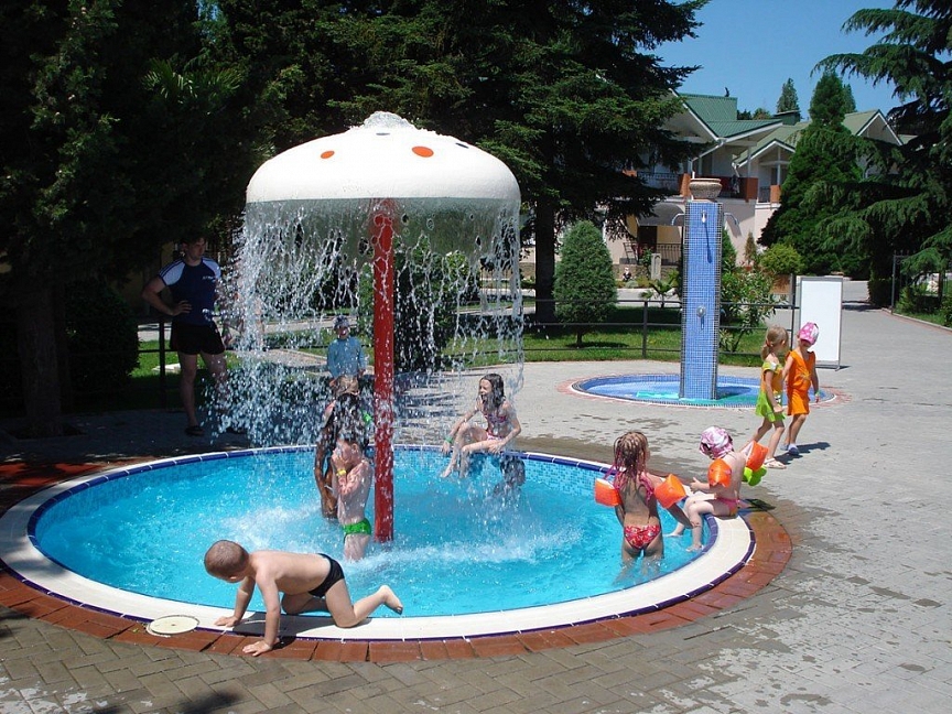 Вода в бассейне - пресная. Рядом с бассейном для взрослых расположен детский бассейн, температура воды в котором поддерживается на уровне 26 - 28 градусов С.