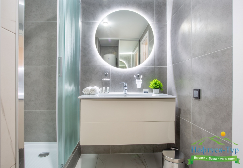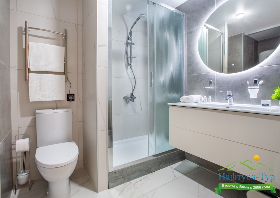 с душем, туалетные принадлежности, фен