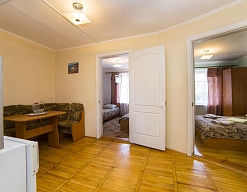 Пансионат довольно простой с обычными небольшими номерами. На территории два корпуса и отдельные домики. Остановка транспорта рядом. Нас поселили в замечательный домик. Горячая вода всегда была в наличии, в комнате 3 кровати, санузел с душевой кабинкой.