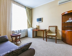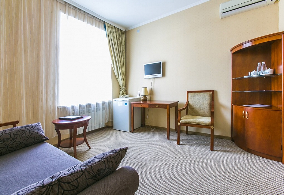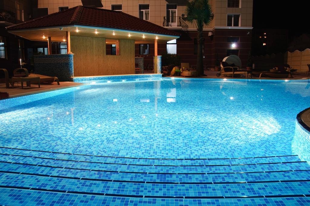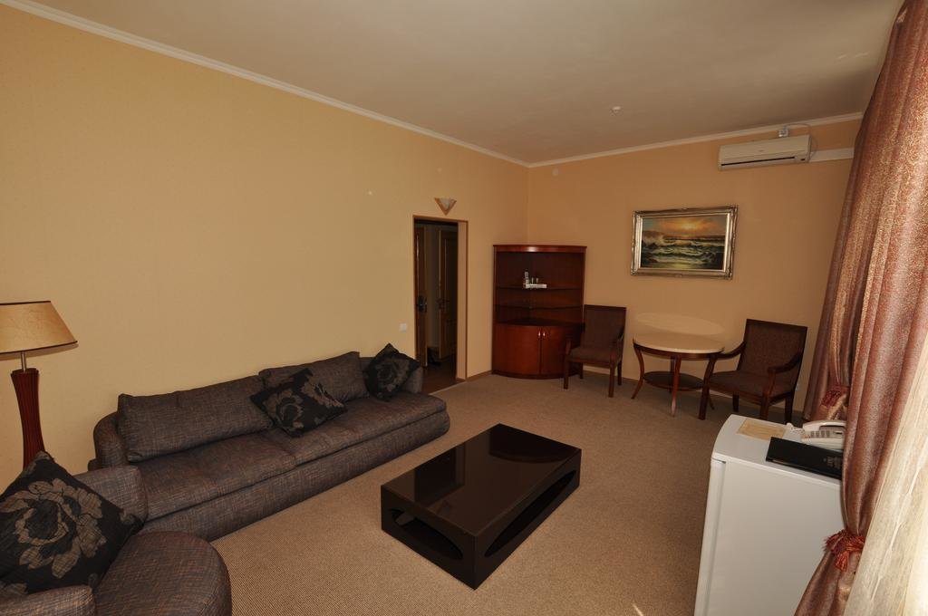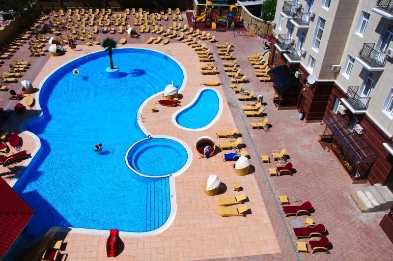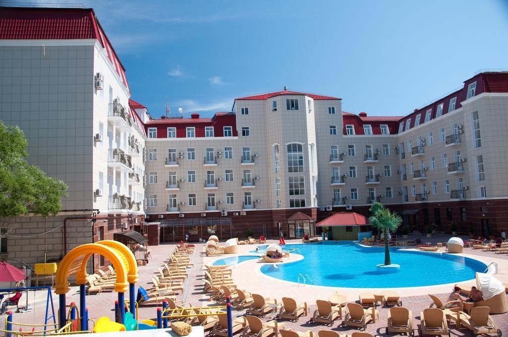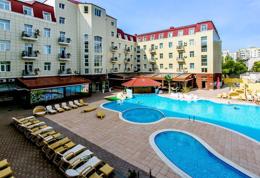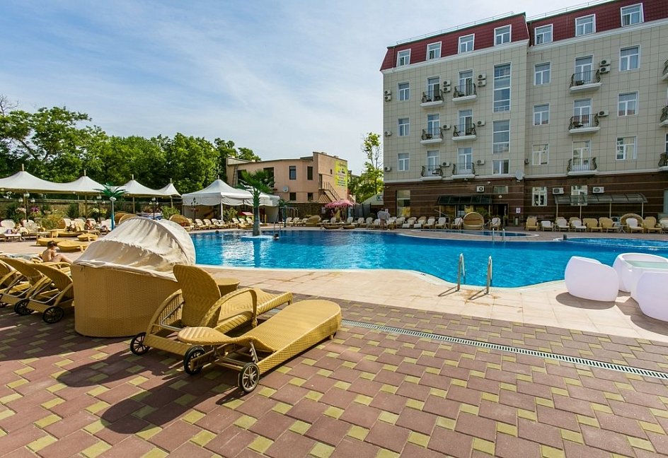 Отель отличного уровня, очень удобное расположение в самом центре. В Евпатории вряд ли встретишь похожий отель. Бассейны-это настоящая находка. Один бассейн с удобными лежаками. Второй-маленький, для детей до 5 лет. Есть джакузи. Спортивный зал небольшой, но потягать железки найдется где. Тренажеры хорошее для поддержания физической формы. Отдыхали в трёхкомнатном люксе. Номер отменный с уютной обстановкой. Достаточно комфортный с балконом во внутренний дворик-перед глазами красивый бассейн. Уборка делалась ежедневно. Wi-Fi все дни нашего пребывания здесь работал великолепно. Завтраки включены в проживание. Нам подошло, очень обширный выбор. К морю минут 10-15 пешком. Но мы больше время проводили возле бассейна. Сервис превосходный, персонал внимательный. Шикарный отдых. Приедем ещё!!!