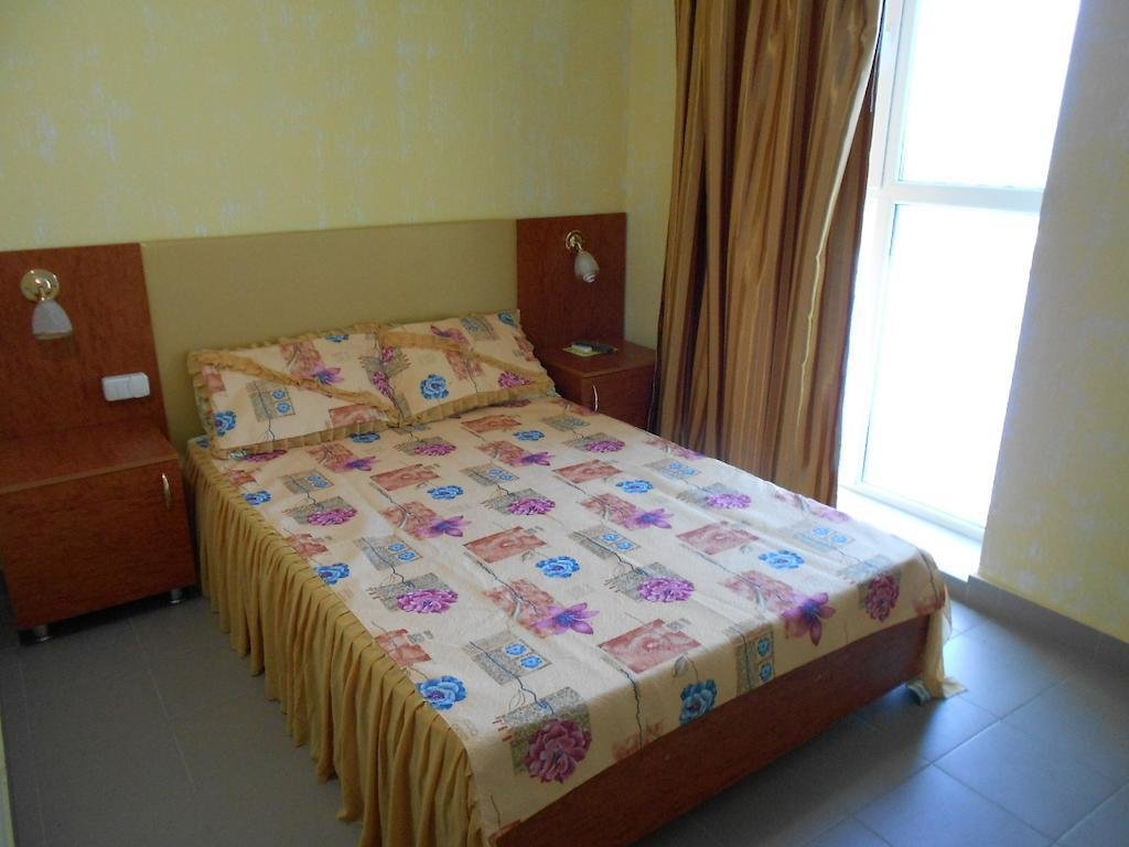 Отдыхали в пансионате с двумя детьми. В отеле всё новенькое. Жили в двухместном номере. Воспользовались трансфером, так как мы с детьми. Фотографии сайта соответствовали действительности. Номер выходил во внутренний двор. Всё ухожено, зелено. Имеется бассейн, детская площадка. Есть детская комната с нянечкой. Столовая отличная. Ассортимент нас порадовал, всегда на выбор 2-3 каши, сырники, выпечка. В ресторане "Золотая рыбка" обедали и ужинали, кухня выше всяческих похвал, а пейзаж загляденье. Пляжная зона с зонтиками и лежаками, песок, море достаточно чистое. Убирают стабильно. Много развлечений для детишек : батуты, аттракционы с горками. Ездили в Евпаторию прогуляться и поменять картинку 20 мин.на автобусе. Понравилось, всем спасибо!!! Отдельно хочу поблагодарить туроператора "Нафтуся тур", менеджера Анну за дельный совет. Всё на высоком уровне, советую!!!