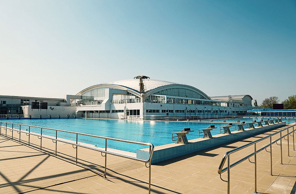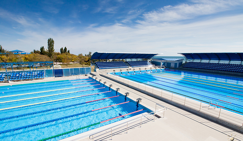 - открытый бассейн 50х21 м, 8 дорожек