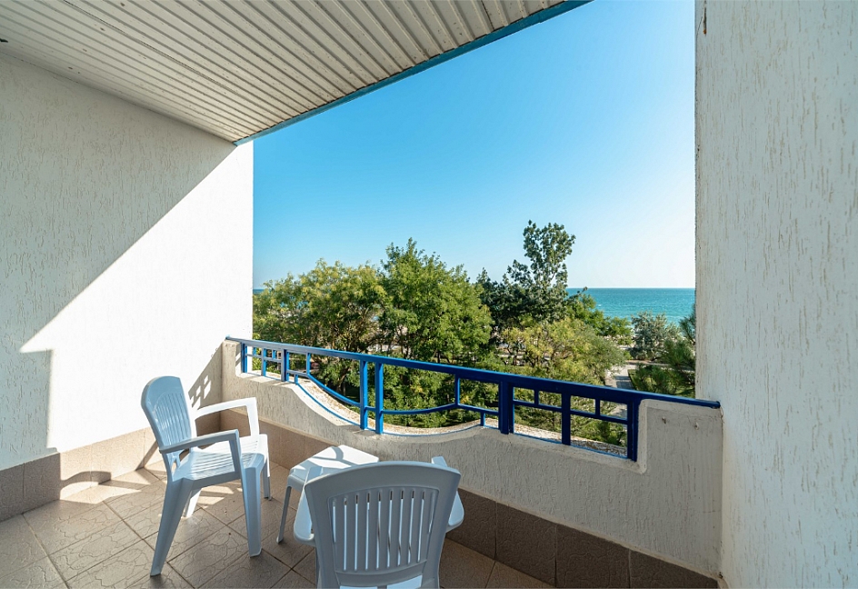 Расположение: Первая линия у моря (30 м до пляжа), 5 км до центра Евпатории, 65 км до аэропорта Симферополь