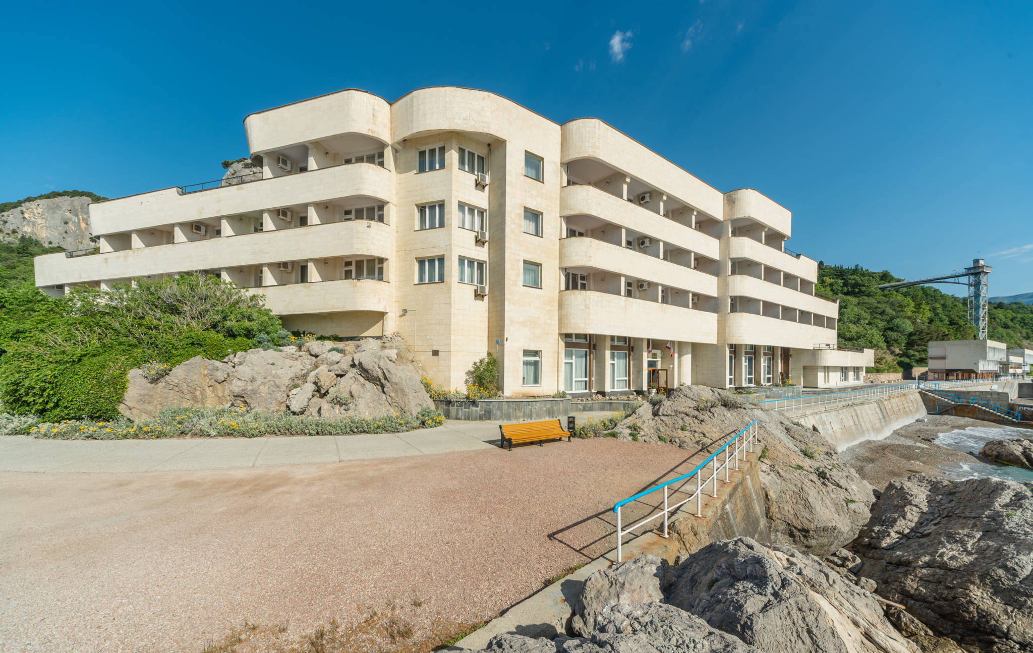 С лоджий 4 и 5 этажей отеля можно наблюдать живописную панораму южных склонов горы Ай-Петри и акваторию ялтинского морского порта.