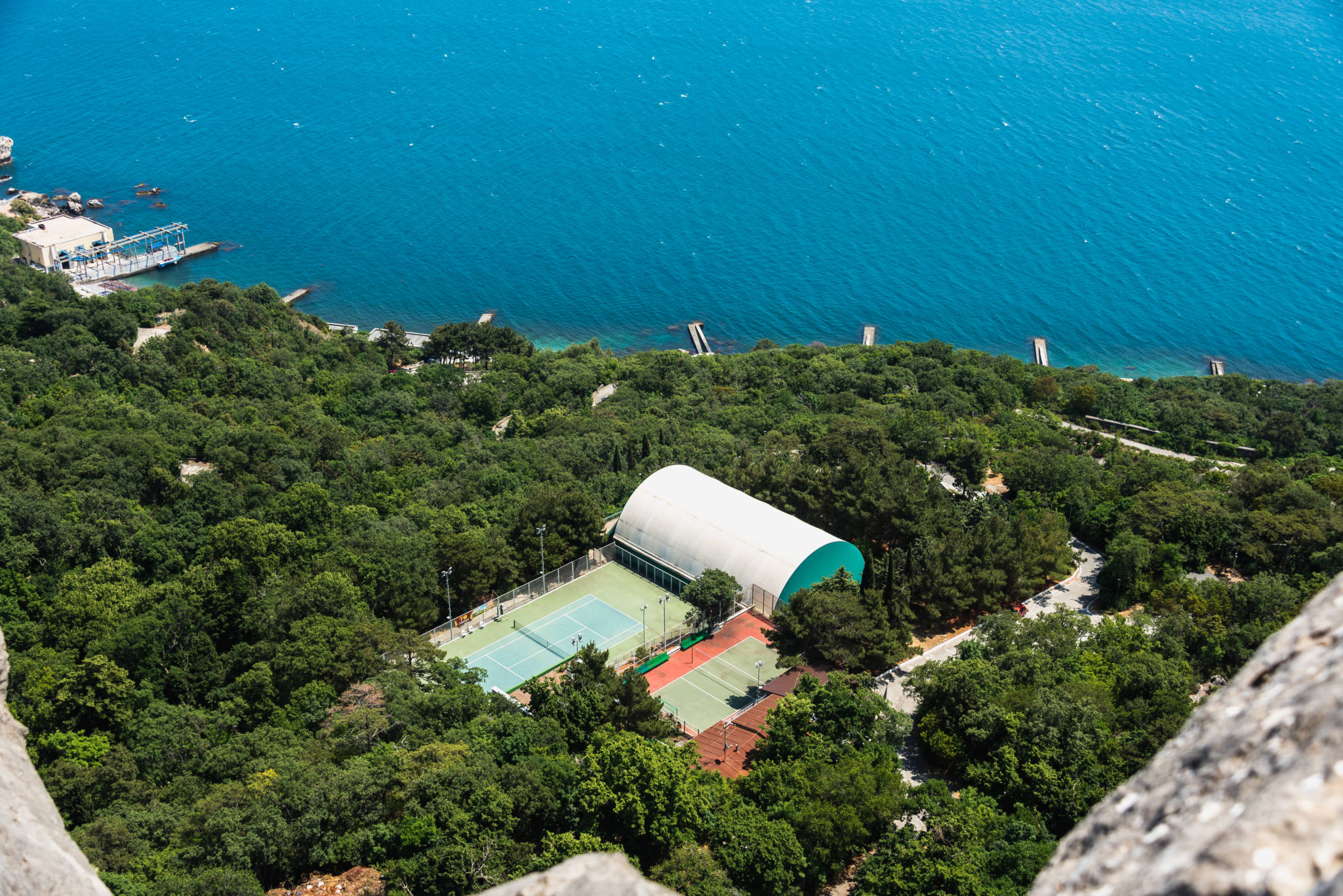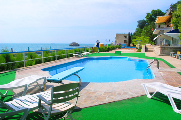 Он расположен в бухте Ласпи, прямо у Черного моря и является крупным объектом на первой линии крымского побережья.