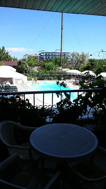 Отличный апарт-отель! Ехали в Крым с намерением готовить самим. Но в этом отеле милейшие женщины на чистесенькой кухне готовят, как мама, поэтому смысла заморачиваться с кухней не было вообще! Завтрак на подносике приносили прямо в номер на террасу! Чистейший бассейн.