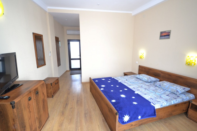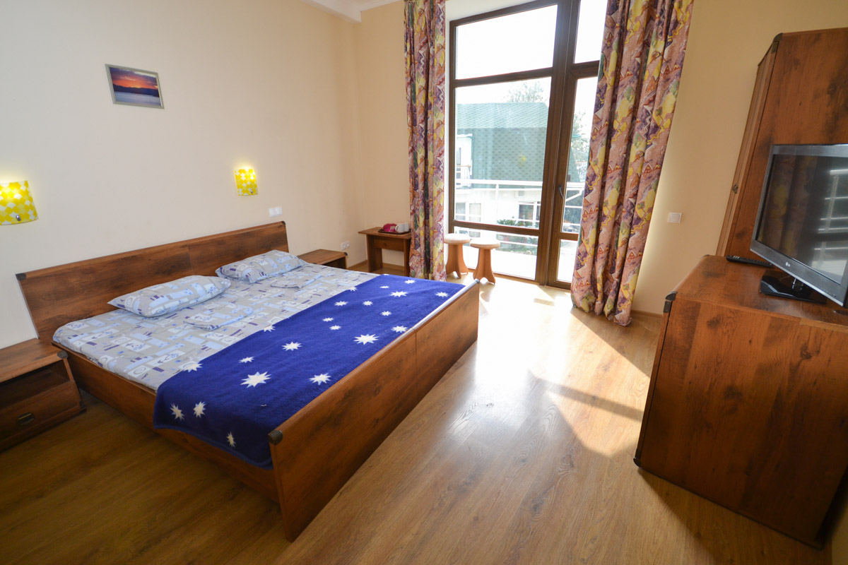 Для вашего комфортного проживания мы рады предоставить вам хорошо оборудованные 1-местные, 2-местные и 2-комнатные номера различных категорий. В номерах вы можете найти все, что вам необходимо для комфортного проживания: современная мебель, санузел, чайник, холодильник, телевизор, сейф и кондиционер. С балконов открывается незабываемый вид на море и горы. На всей территории гостиницы имеется скоростной wi-fi.
