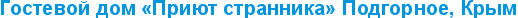 Приглашаем всех на отдых и оздоровление в гостевом доме "Приют Странника"! Вас ждет целебный горный воздух наполненный ароматами цветов и степных трав, соляная комната и настоящая русская баня. Гостевой дом находится в живописном, прекрасном, экологически чистом районе Севастополя — Байдарская долина (с. Подгорное). Отдых в Байдарской долине покорит своей удивительной красоты пейзажами природы, горных массивов, водопадами, реками и озерами с кристально чистой водой.