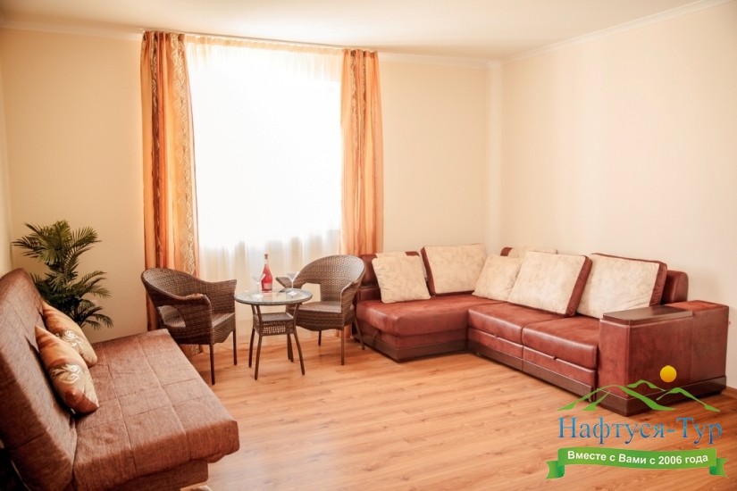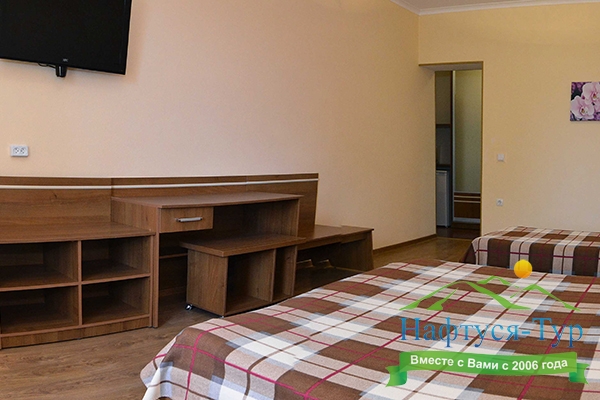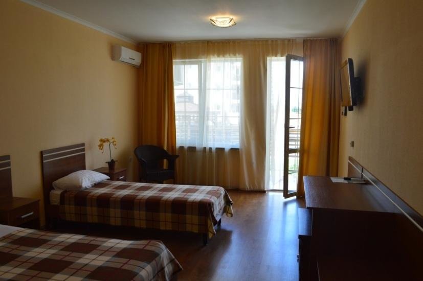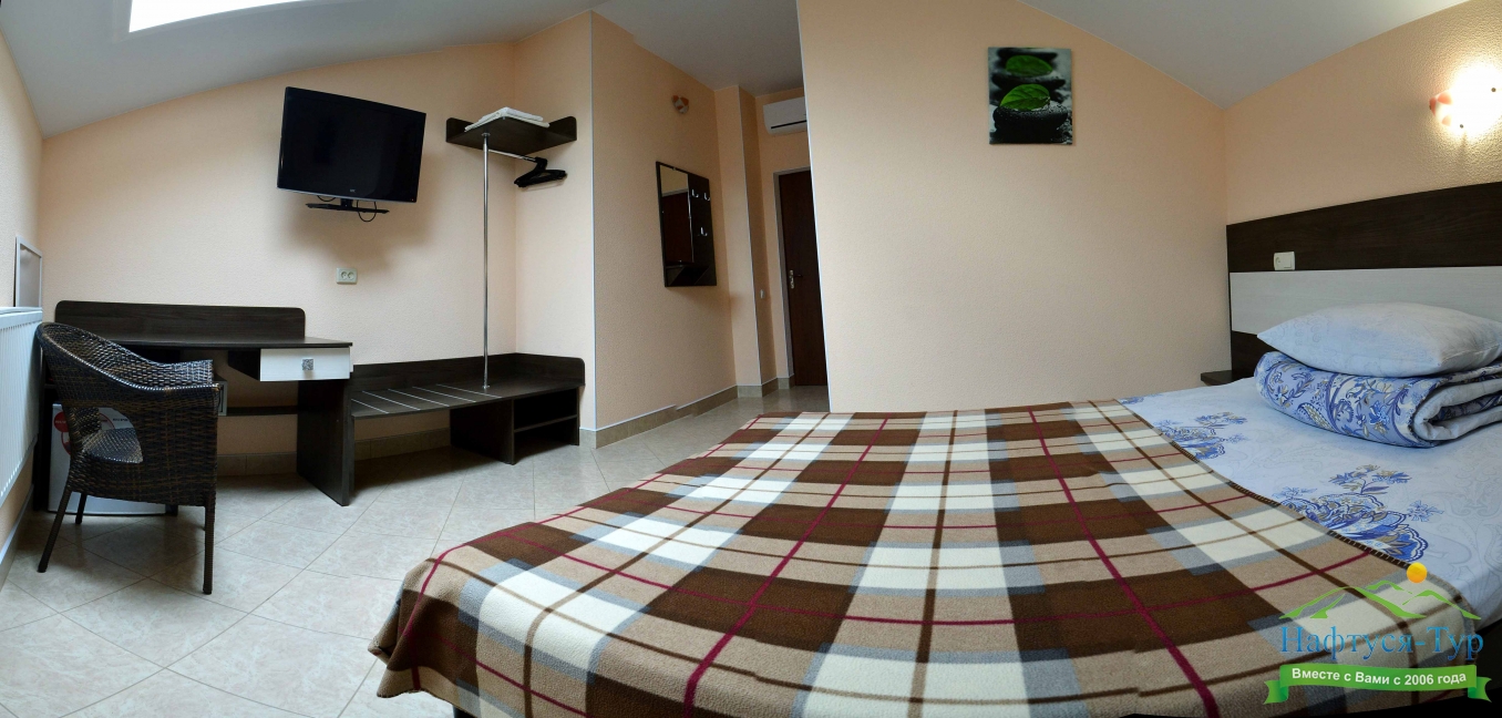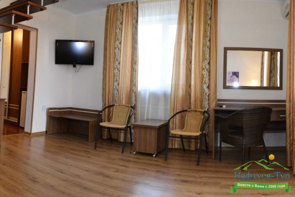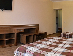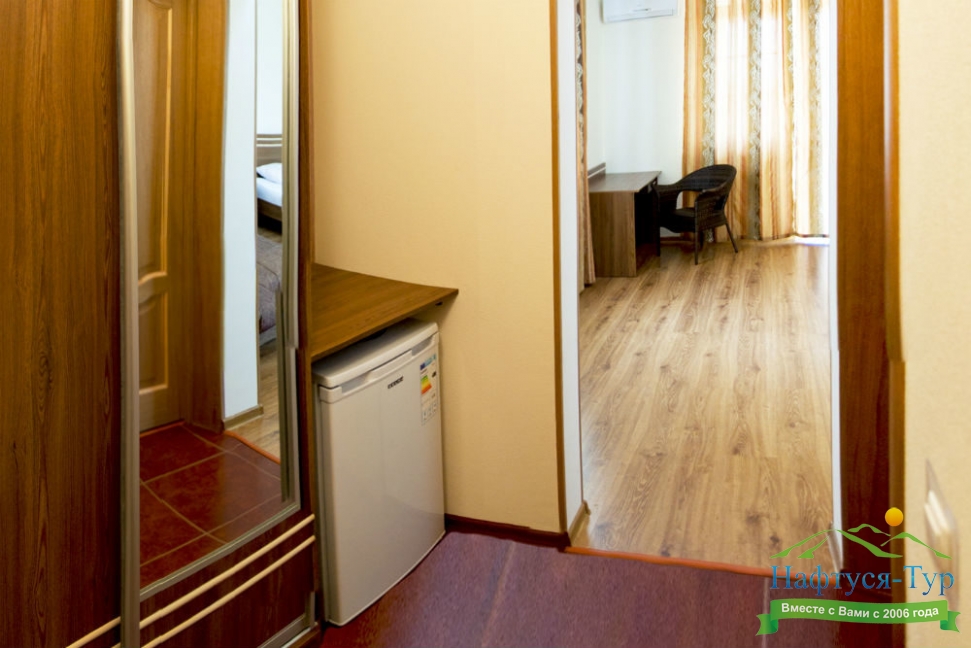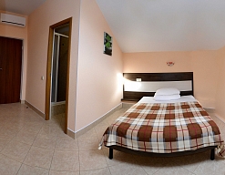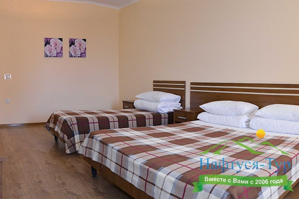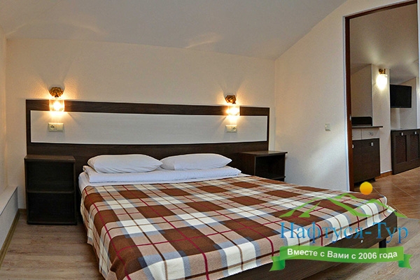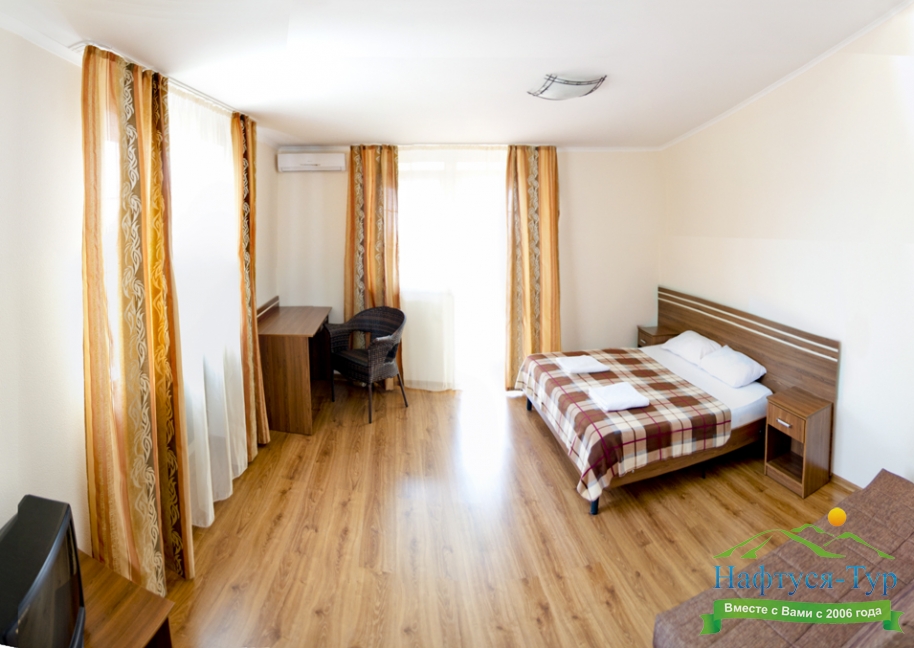 Останавливались в данном отеле семьёй из трёх человек этим летом. Брали номер категории Полулюкс в котором благополучно разместились, свободно передвигались, не чувствовали дискомфорта. В комнате был в наличии телевизор, шкаф, сейф, раскладной диван, стол, большая кровать.