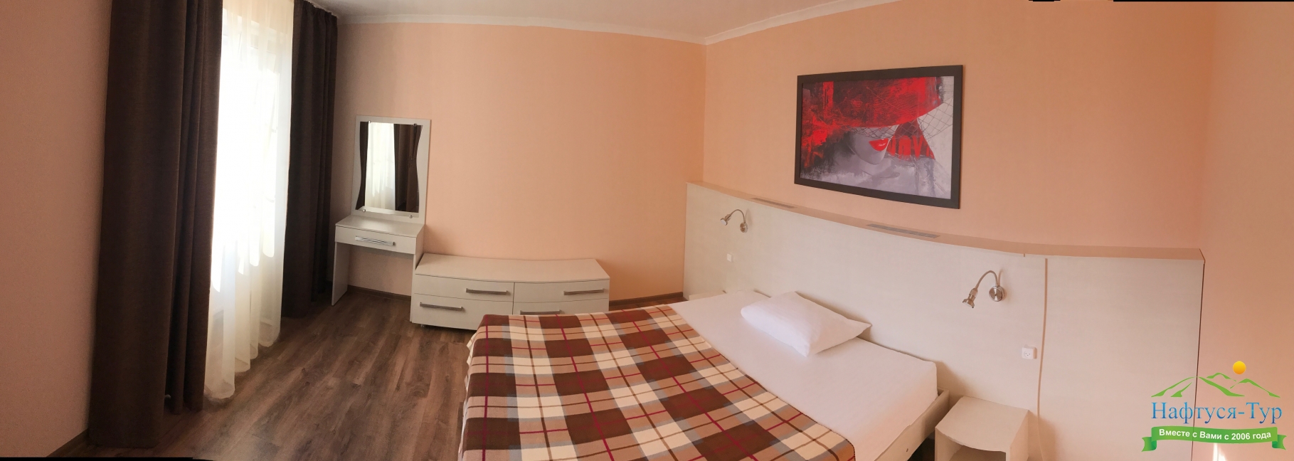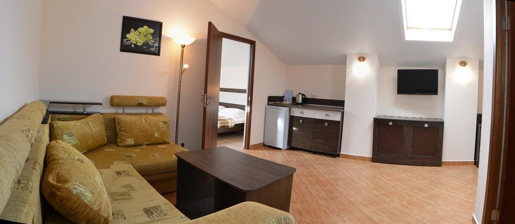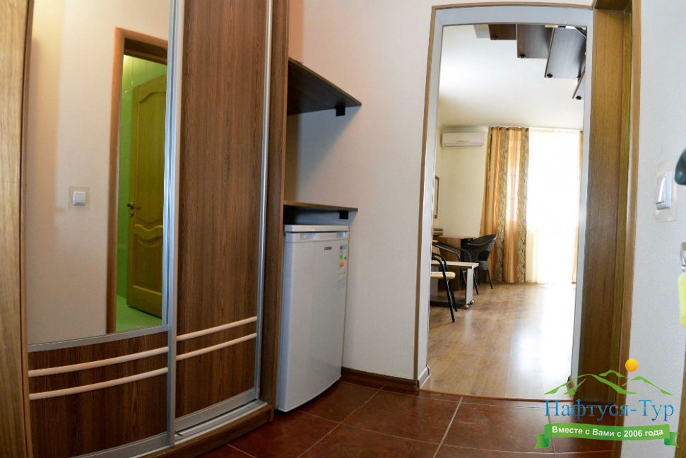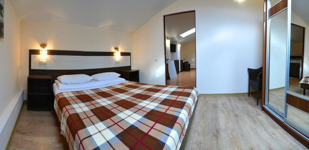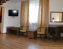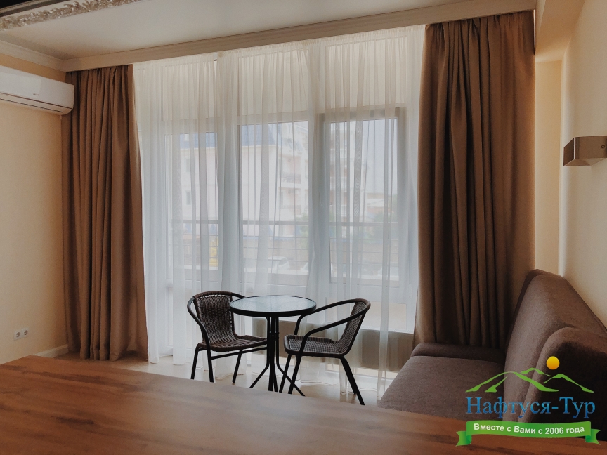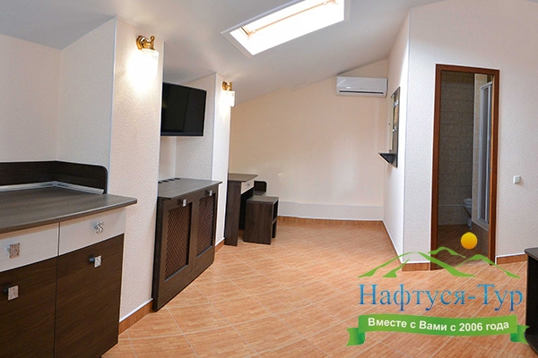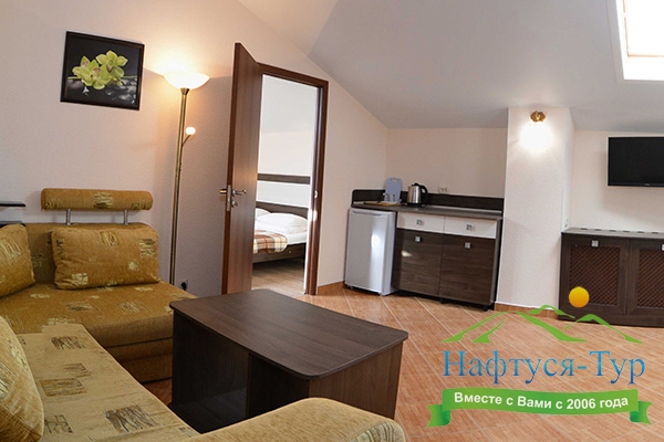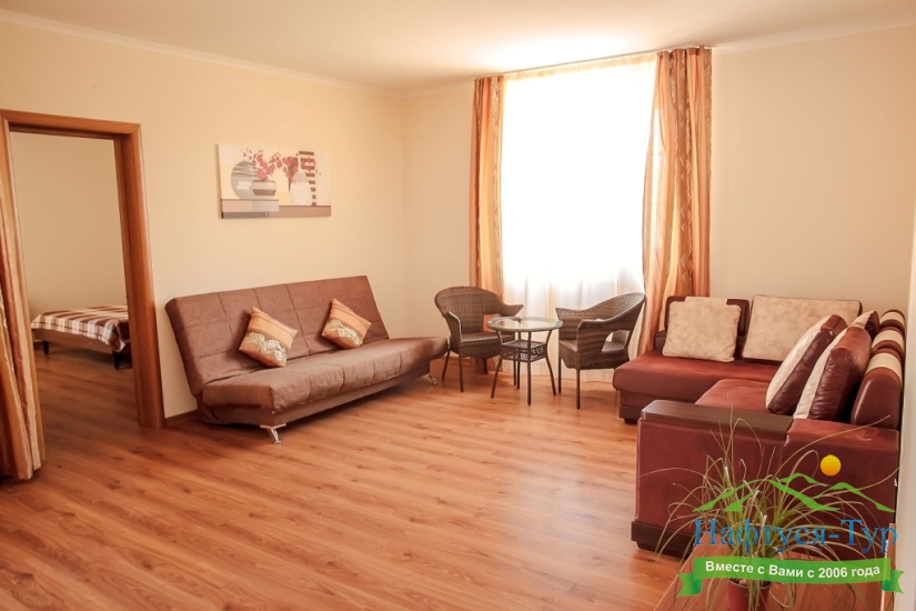 Останавливались в данном отеле семьёй из трёх человек этим летом. Брали номер категории Полулюкс в котором благополучно разместились, свободно передвигались, не чувствовали дискомфорта. В комнате был в наличии телевизор, шкаф, сейф, раскладной диван, стол, большая кровать.