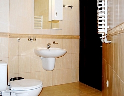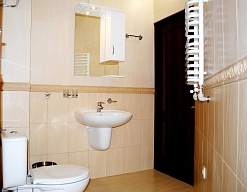 с ванной/душем, тапочки, туалетные принадлежности, фен