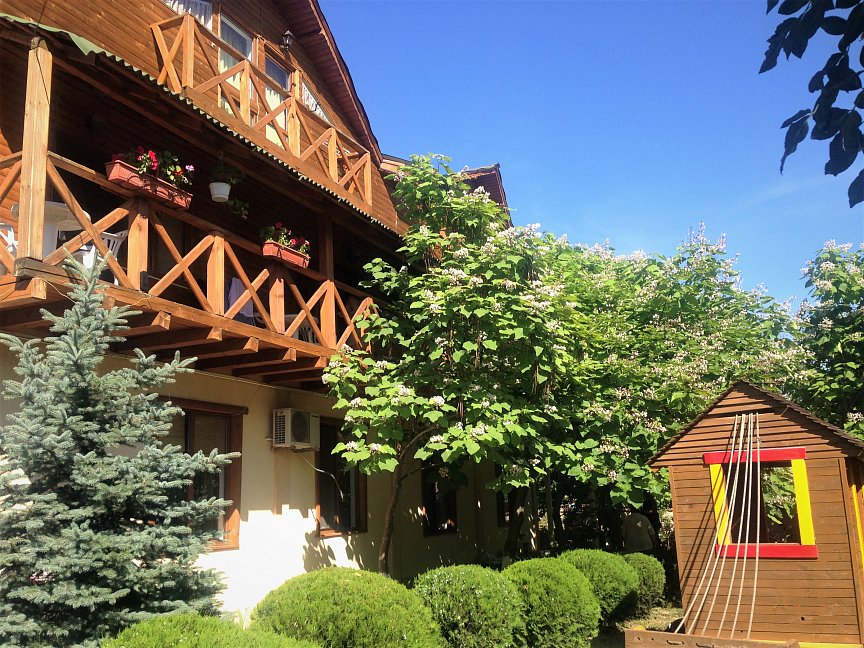 Поездом до ж/д вокзала г.Симферополь, далее от автостанции "Курортная" маршрутным такси Симферополь- Рыбачье до пос.Солнечногорское, в Солнечногорском остановка "Поворот на Генеральское-Водопад-Джур-Джур", по ул Вишнёвая вверх 350 м первый поворот направо и вверх 50 м по пер Персиковому до отеля.