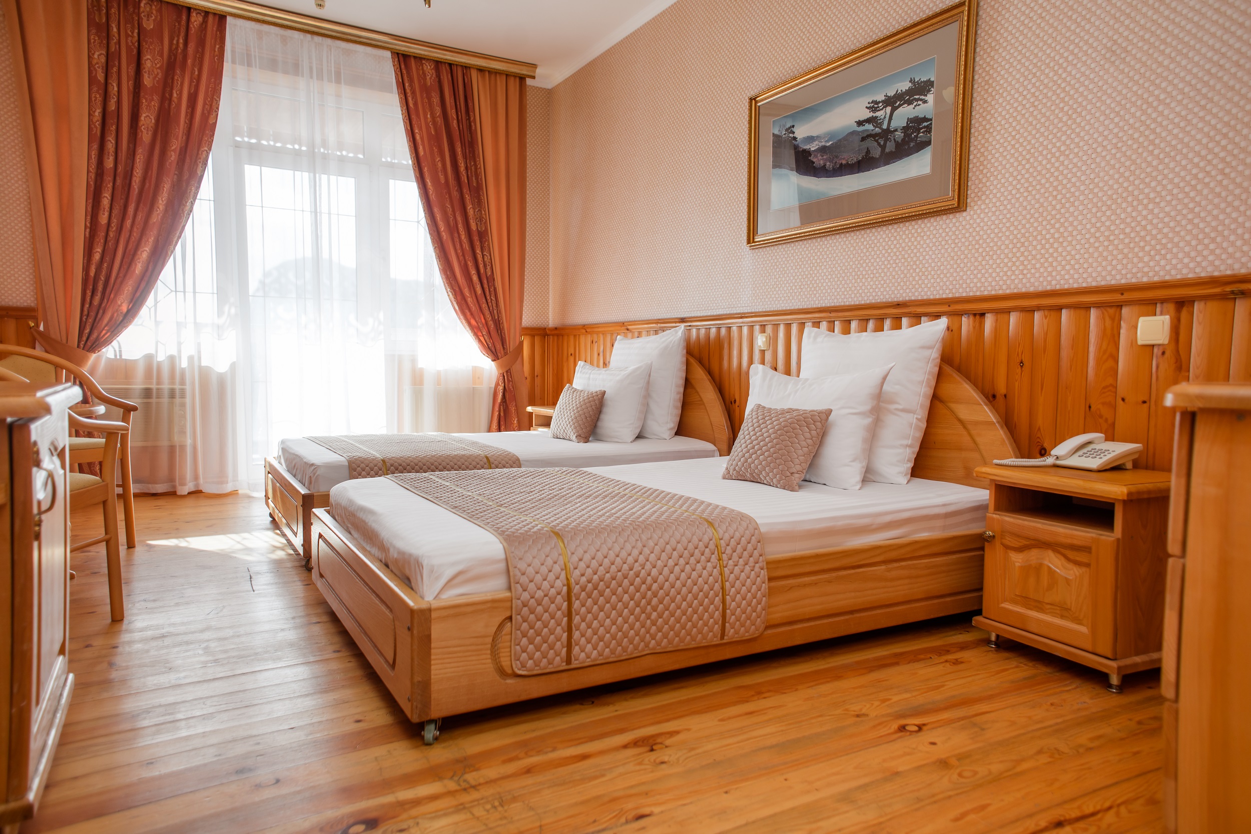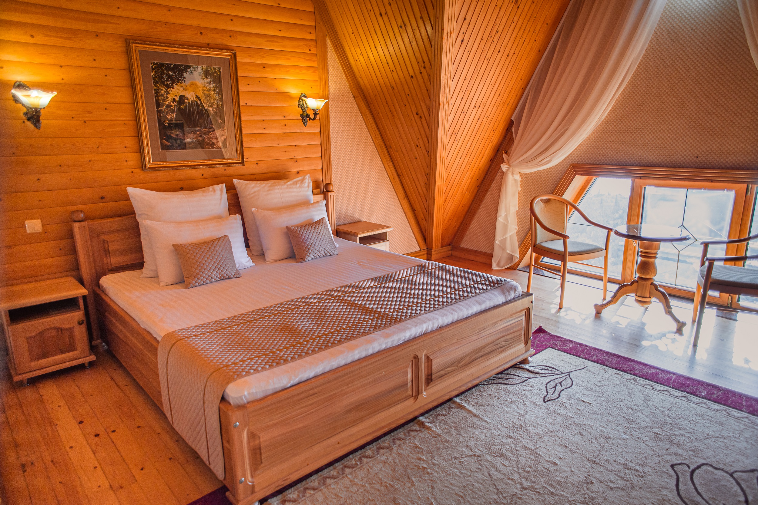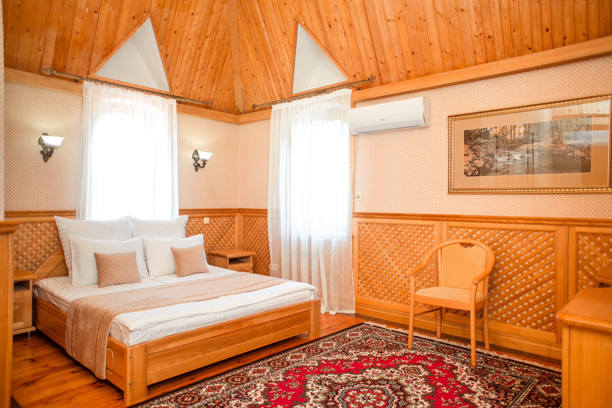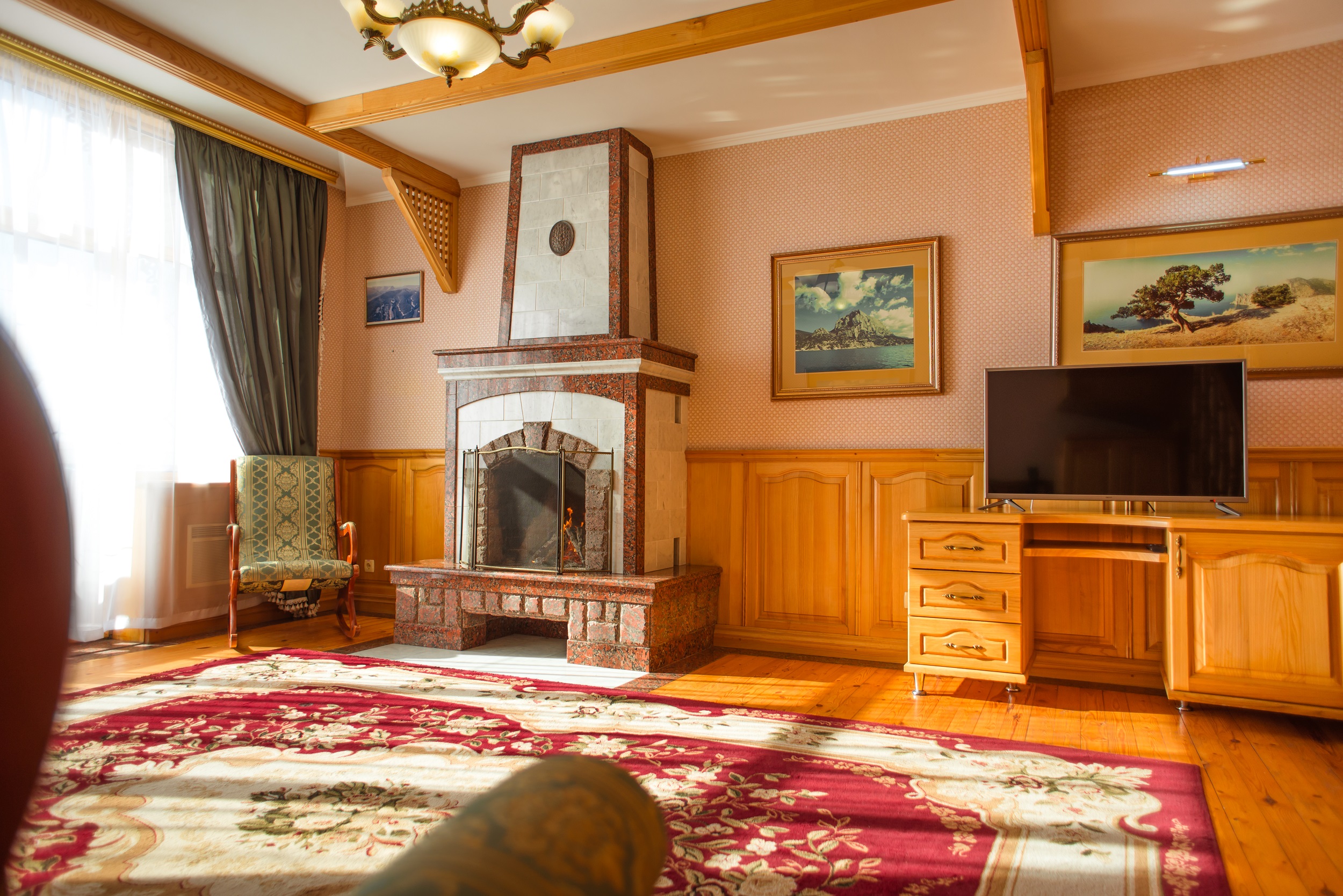Очень красивый отель, отделка камнем и деревом (без пластика) в классическом стиле. Наш номер был выдержан в стиле отеля. Уборка хорошая. Обслуживание на высоком уровне. Отдельно хочу отметить ресторан.