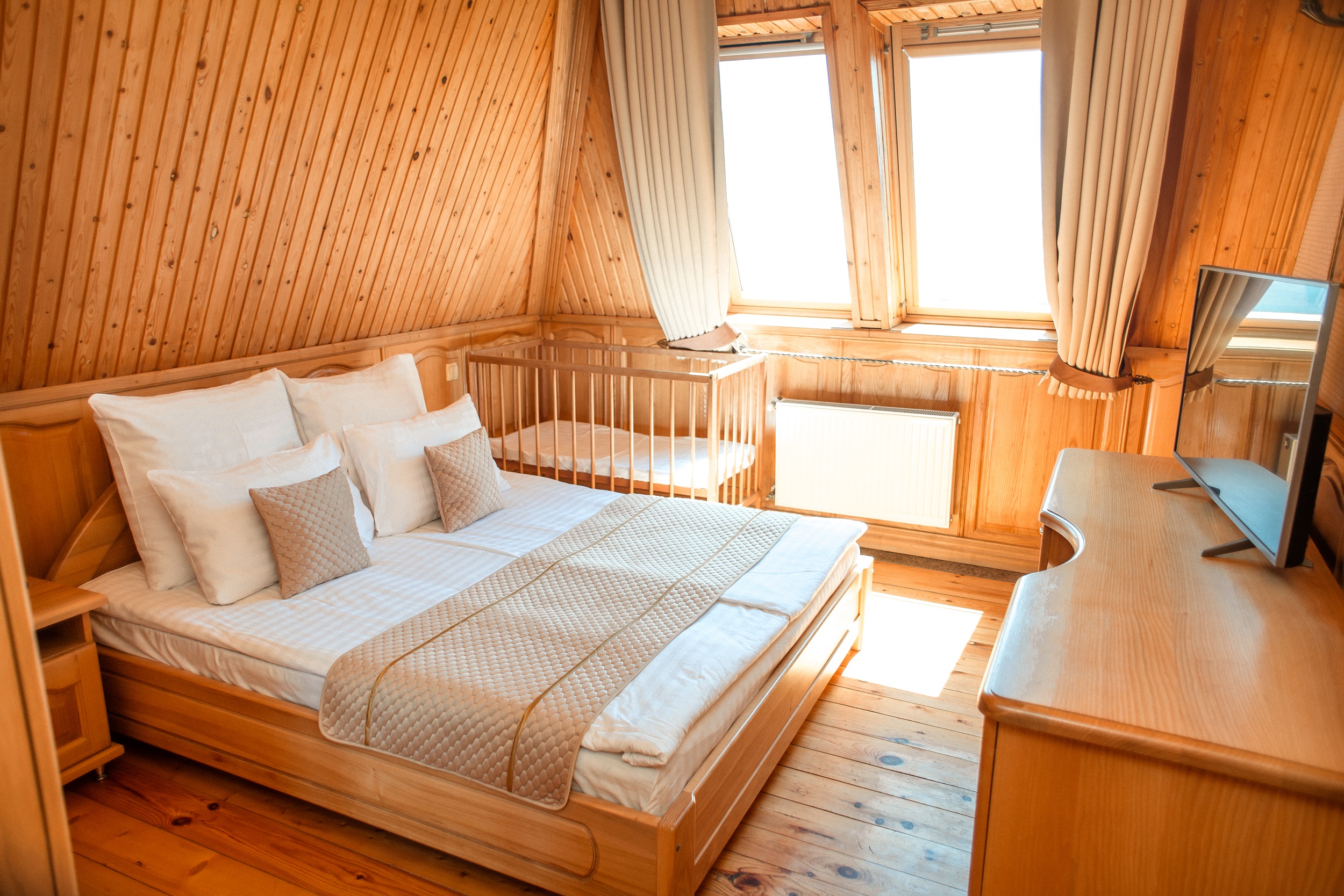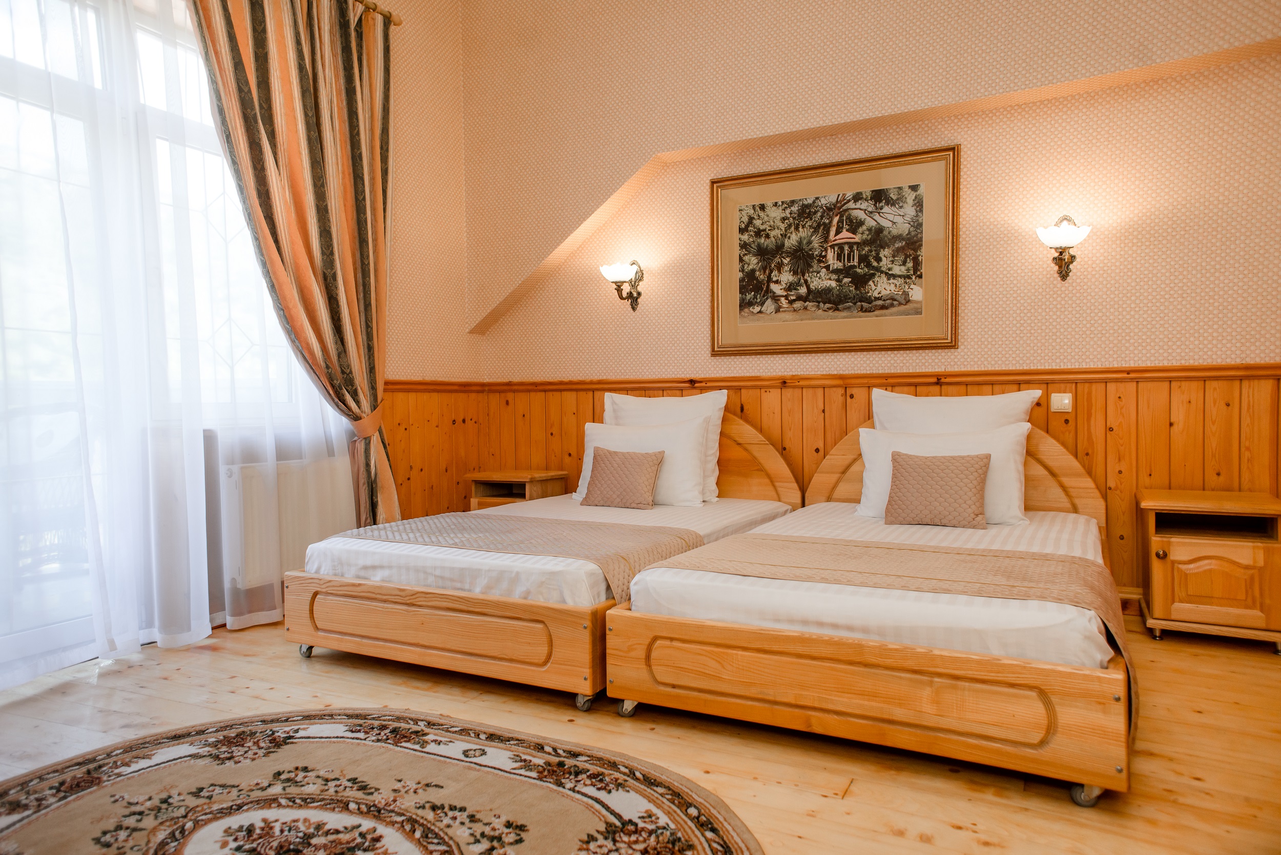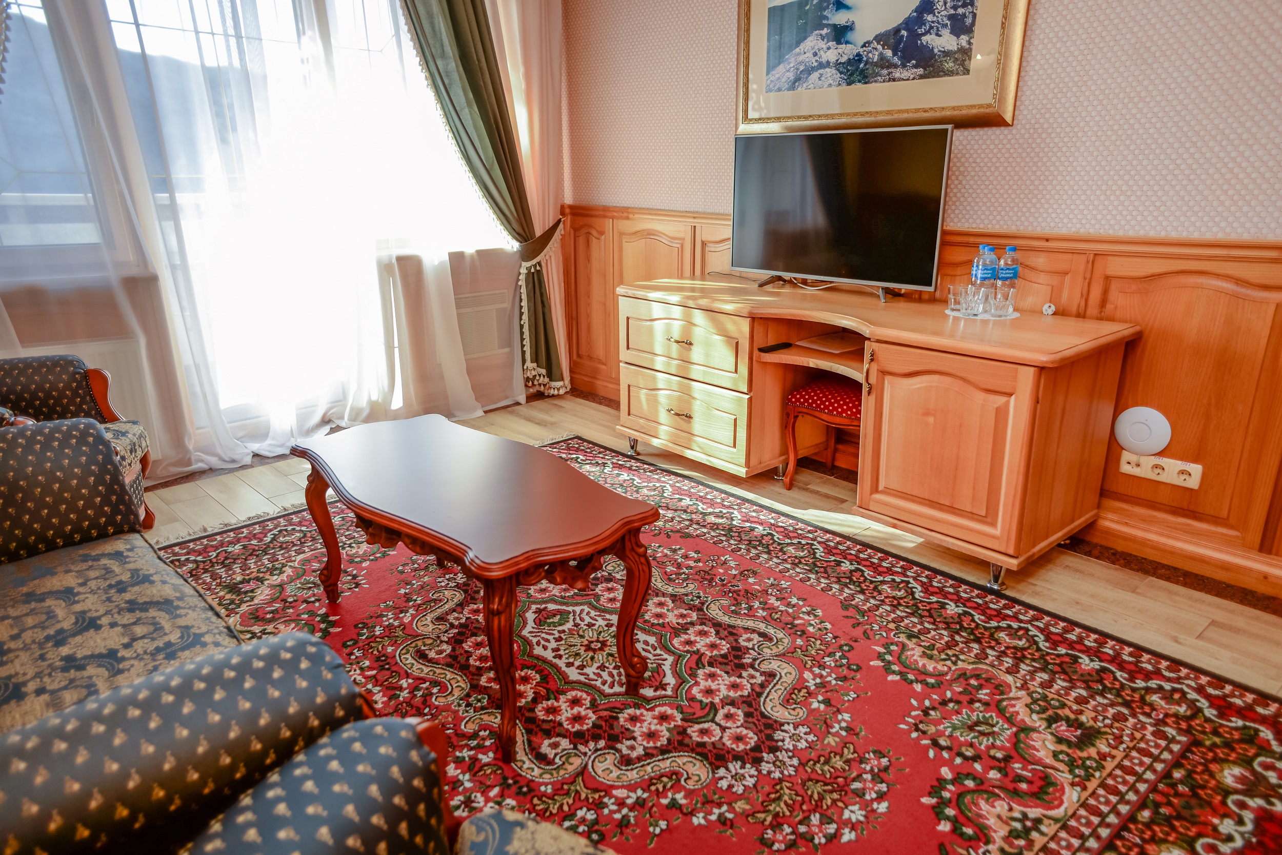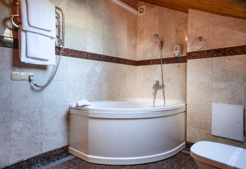 Очень красивый отель, отделка камнем и деревом (без пластика) в классическом стиле. Наш номер был выдержан в стиле отеля. Уборка хорошая. Обслуживание на высоком уровне. Отдельно хочу отметить ресторан.