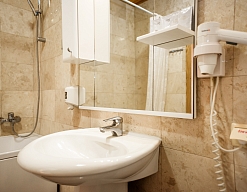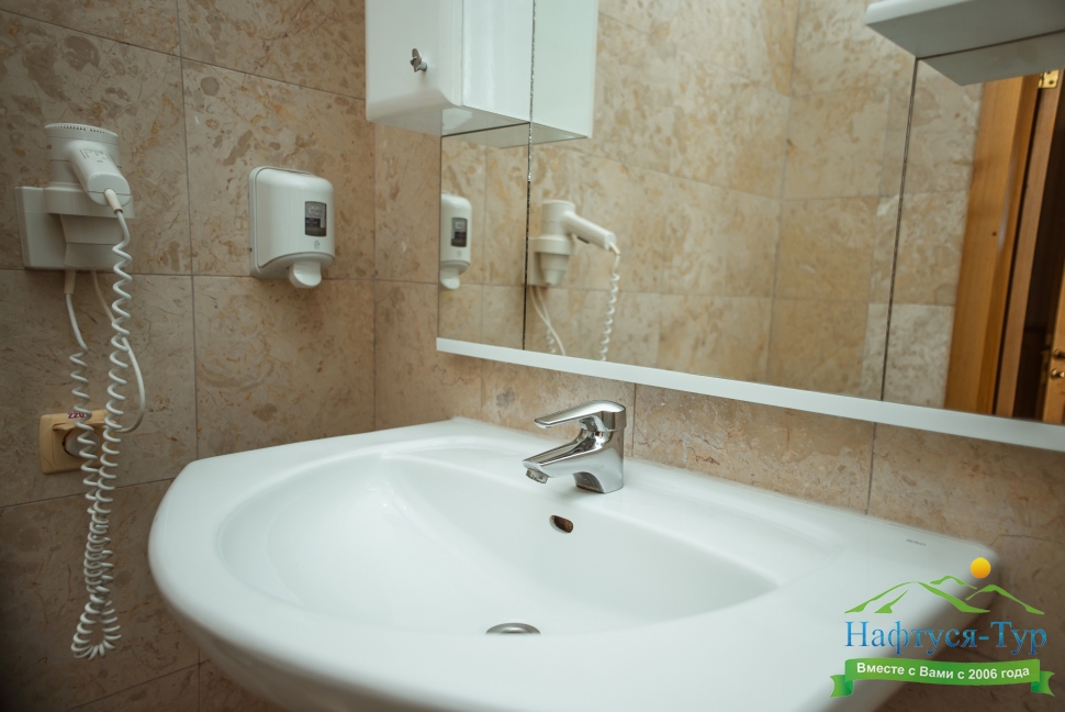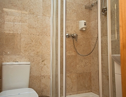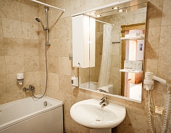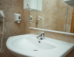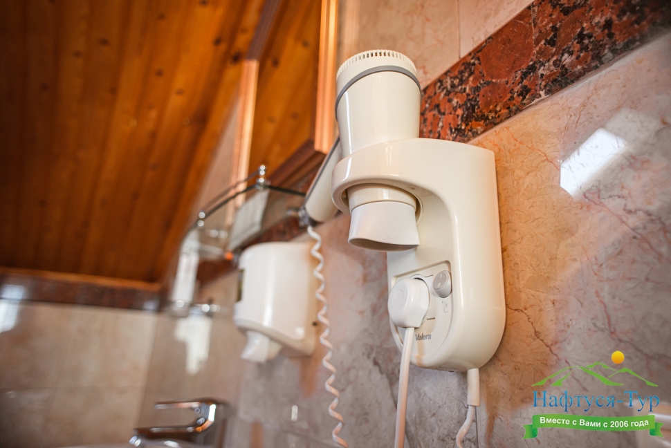 с душевой кабиной, туалетные принадлежности, фен