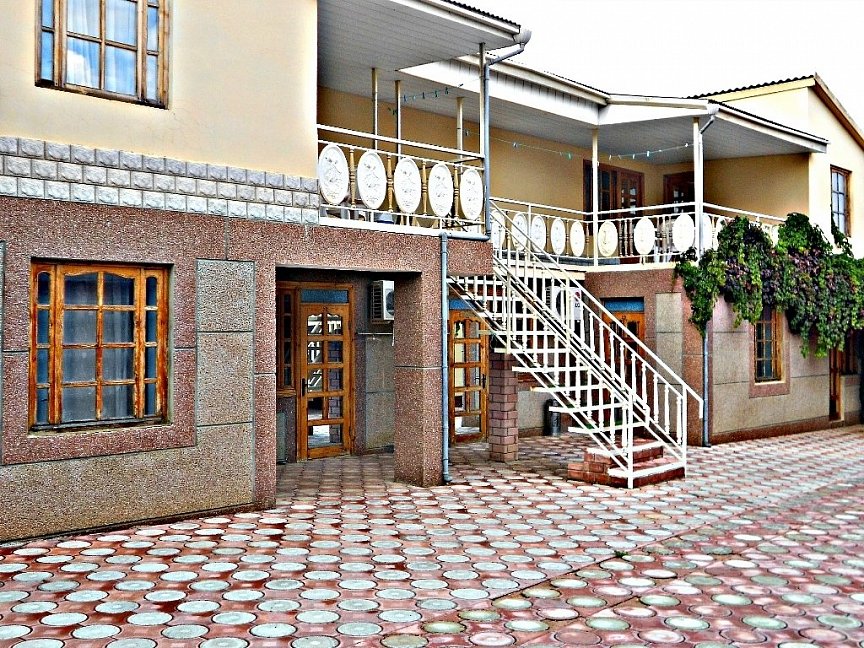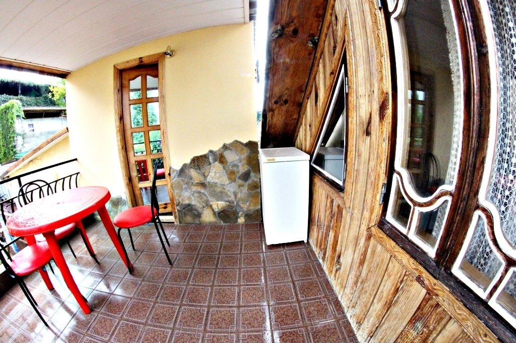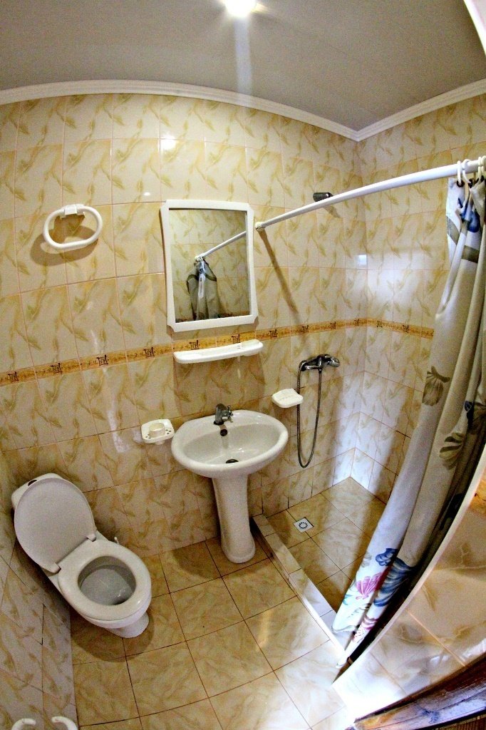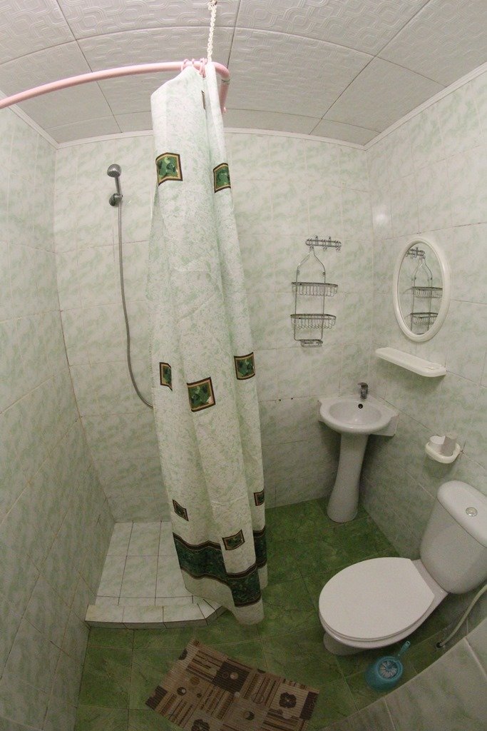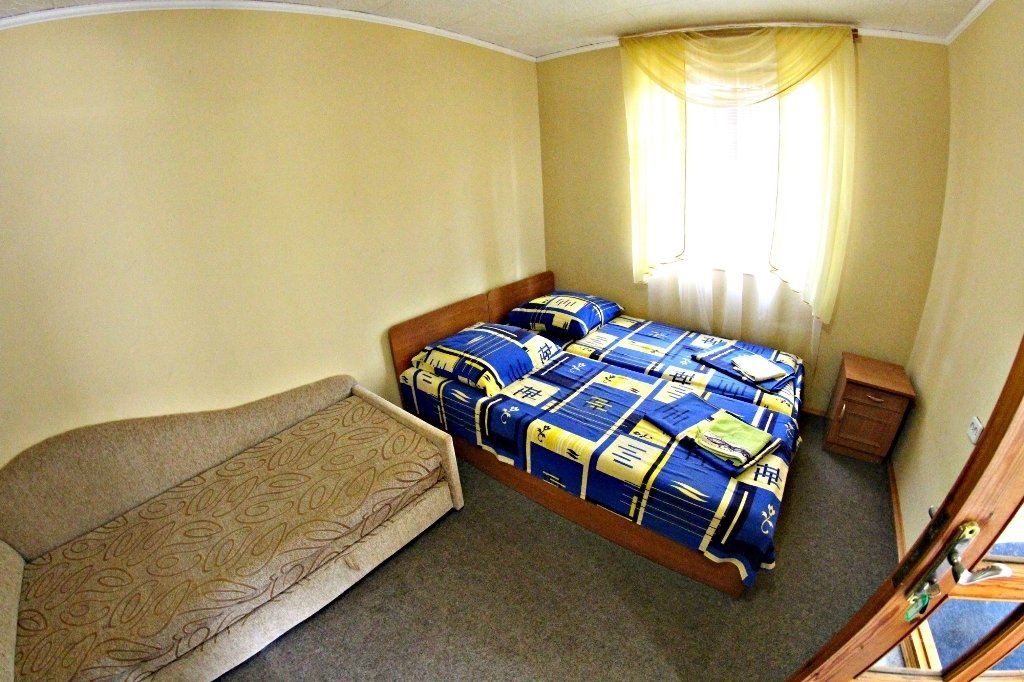 Все фото этого курятника-20 летней давности) По факту-застиранные простыни,подгнившее от старости белье,атмосфера запустения и брошенности.Видимо в советские времена все это было новым и красивым,но сейчас почерневшие от времени двери и облупившаяся краска,как на кладбище) Хозяин такой же древний,как этот курятник мечтает его продать уже 4 года,но-увы и ах) Цены у них-такие же как в нормальном трехзвездочном отеле(специально ходили по другим отелям,узнавали).Не советуем никому))