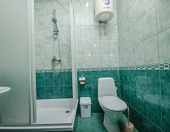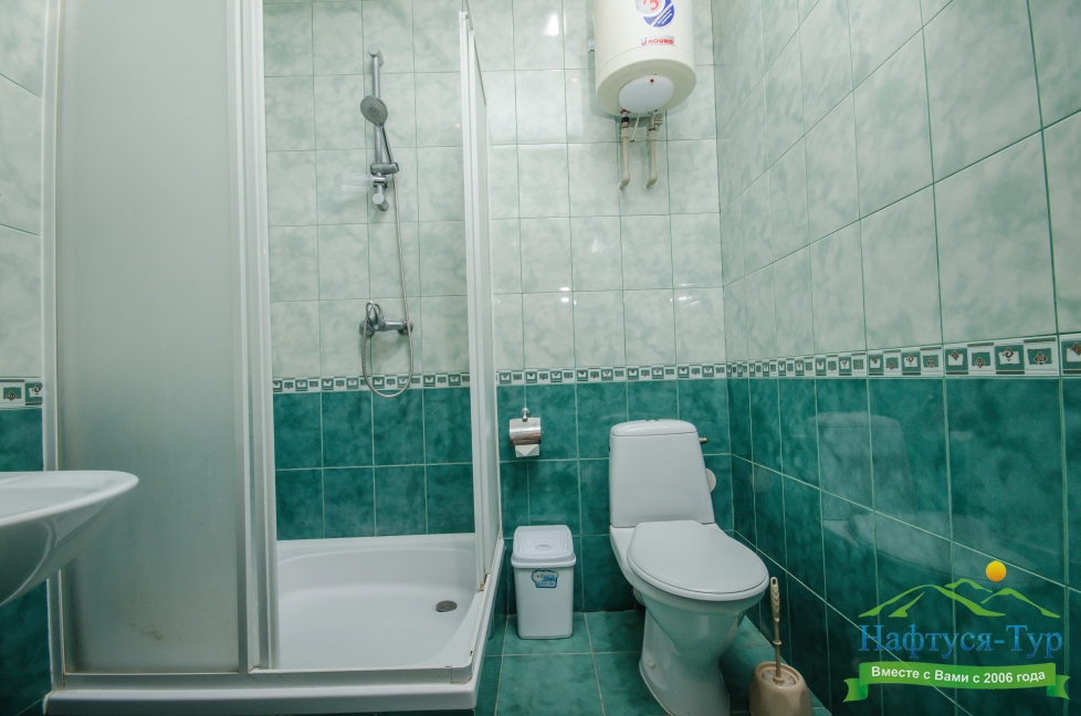 с душевой кабиной, туалетные принадлежности, фен