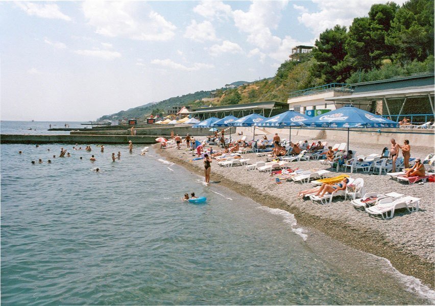 Расположение: Первая линия у моря (100 м до пляжа), 1 км до центра, 90 км до аэропорта Симферополь