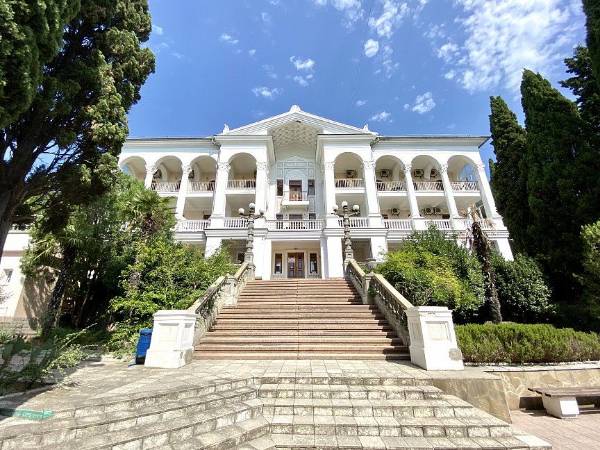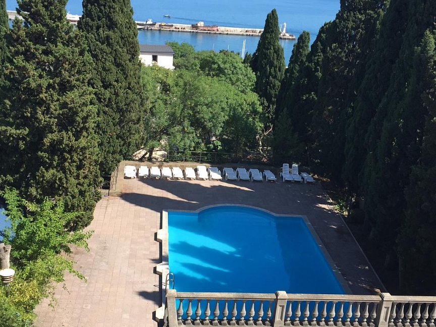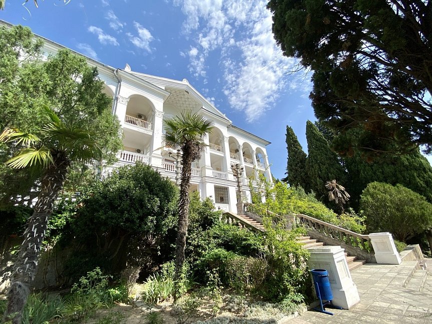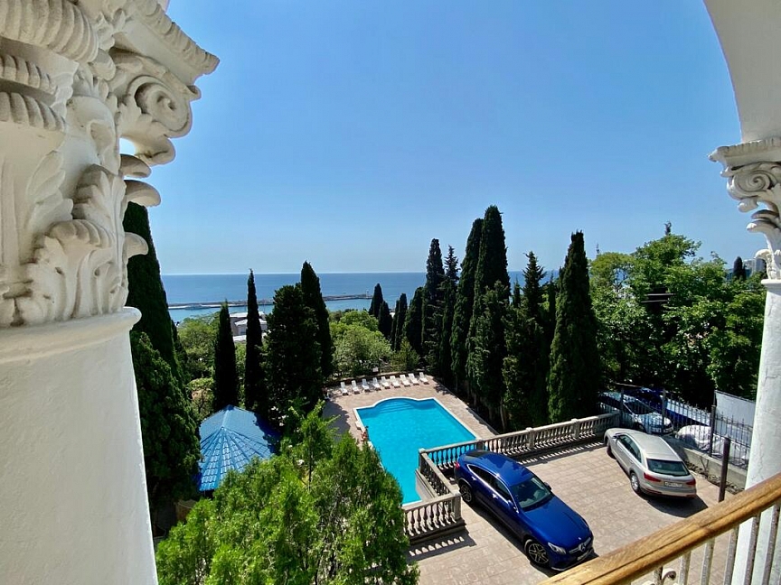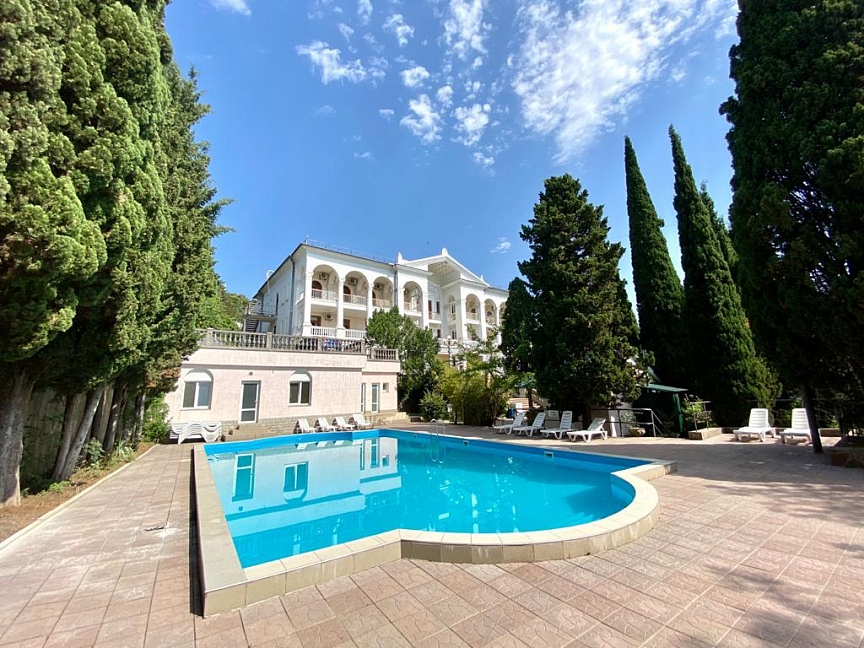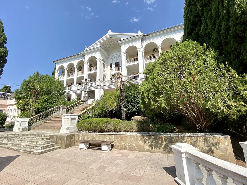 Отель занимает красивый трехэтажный особняк с белоснежными колоннами и балюстрадами, расположенный среди зеленого парка с кипарисами. Индивидуальные террасы и комфортные двухкомнатные номера, из которых открывается великолепный живописный вид на город, горы и ласковое море, Вас не оставят равнодушными. Само здание так и напоминает дворец, в котором мы сделаем все, чтобы Вы чувствовали себя по-королевски. Вокруг отеля - парковая зона, где Вы можете отдохнуть и насладиться чистым воздухом, после прогулки расслабиться у летнего открытого бассейна с шезлонгами, расположенного на территории отеля. Гостям доступен высокоскоростной беспроводной интернет как на территории отеля, так и в номерах, охраняемая парковка возле корпуса. Зимой, осенью и весной приятным бонусом к отдыху будет являться возможность посещения бассейна и банного комплекса, расположенного в соседнем отеле, за символическую плату. Дополнительную радость доставят Вам 5-7 минут ходьбы прогулочным шагом до бассейна, во время чего Вы сможете насладиться видами курорта, подышать свежим морским воздухом, а после плавания в бассейне отправиться в небольшое путешествие на прогулочном катере по Черному морю от центральной Ялтинской набережной.