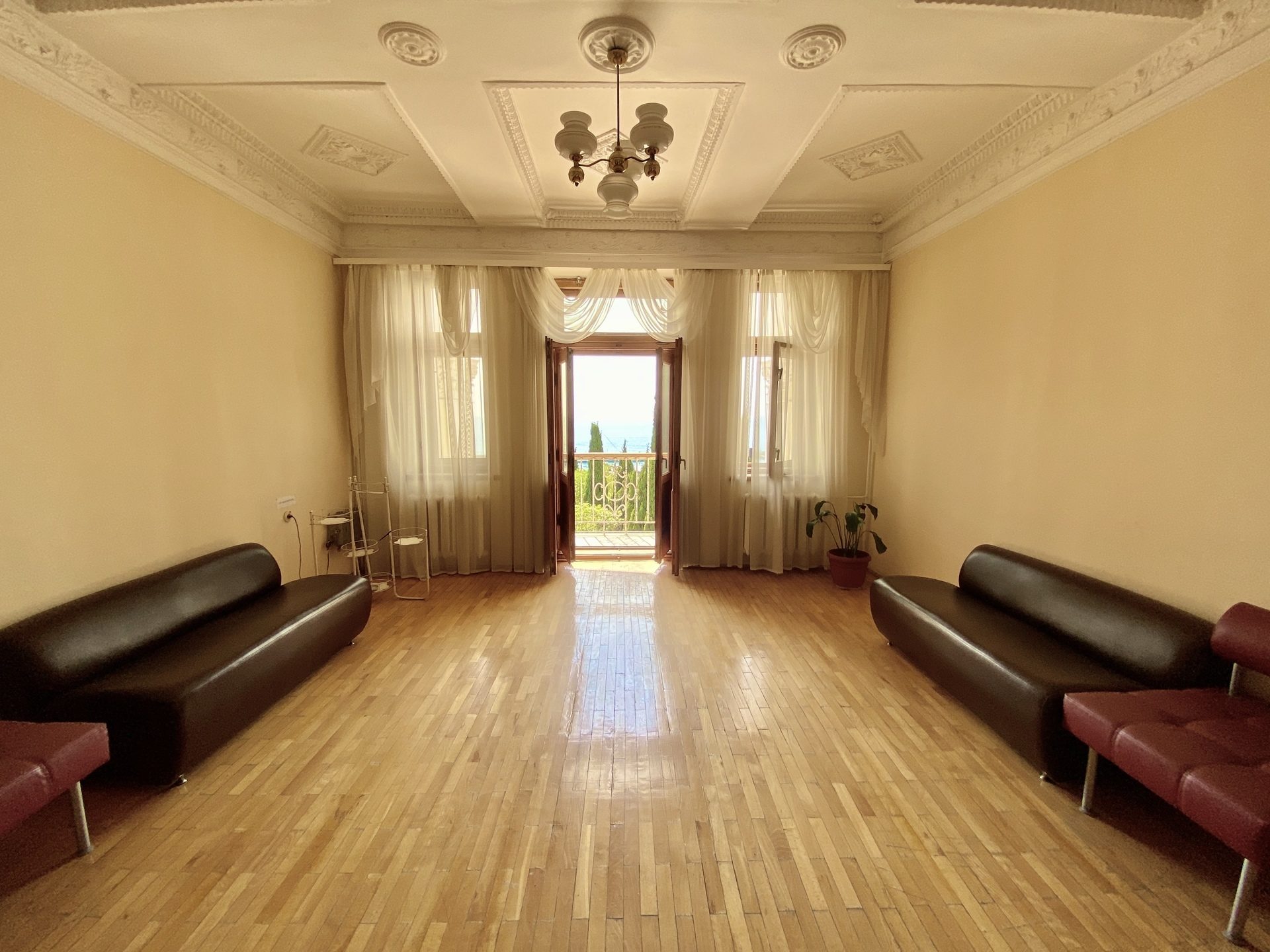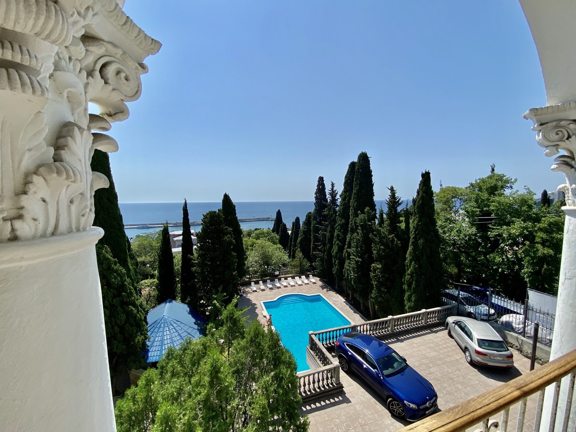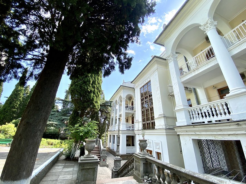Отель занимает красивый трехэтажный особняк с белоснежными колоннами и балюстрадами, расположенный среди зеленого парка с кипарисами. Индивидуальные террасы и комфортные двухкомнатные номера, из которых открывается великолепный живописный вид на город, горы и ласковое море, Вас не оставят равнодушными. Само здание так и напоминает дворец, в котором мы сделаем все, чтобы Вы чувствовали себя по-королевски. Вокруг отеля - парковая зона, где Вы можете отдохнуть и насладиться чистым воздухом, после прогулки расслабиться у летнего открытого бассейна с шезлонгами, расположенного на территории отеля. Гостям доступен высокоскоростной беспроводной интернет как на территории отеля, так и в номерах, охраняемая парковка возле корпуса. Зимой, осенью и весной приятным бонусом к отдыху будет являться возможность посещения бассейна и банного комплекса, расположенного в соседнем отеле, за символическую плату. Дополнительную радость доставят Вам 5-7 минут ходьбы прогулочным шагом до бассейна, во время чего Вы сможете насладиться видами курорта, подышать свежим морским воздухом, а после плавания в бассейне отправиться в небольшое путешествие на прогулочном катере по Черному морю от центральной Ялтинской набережной.