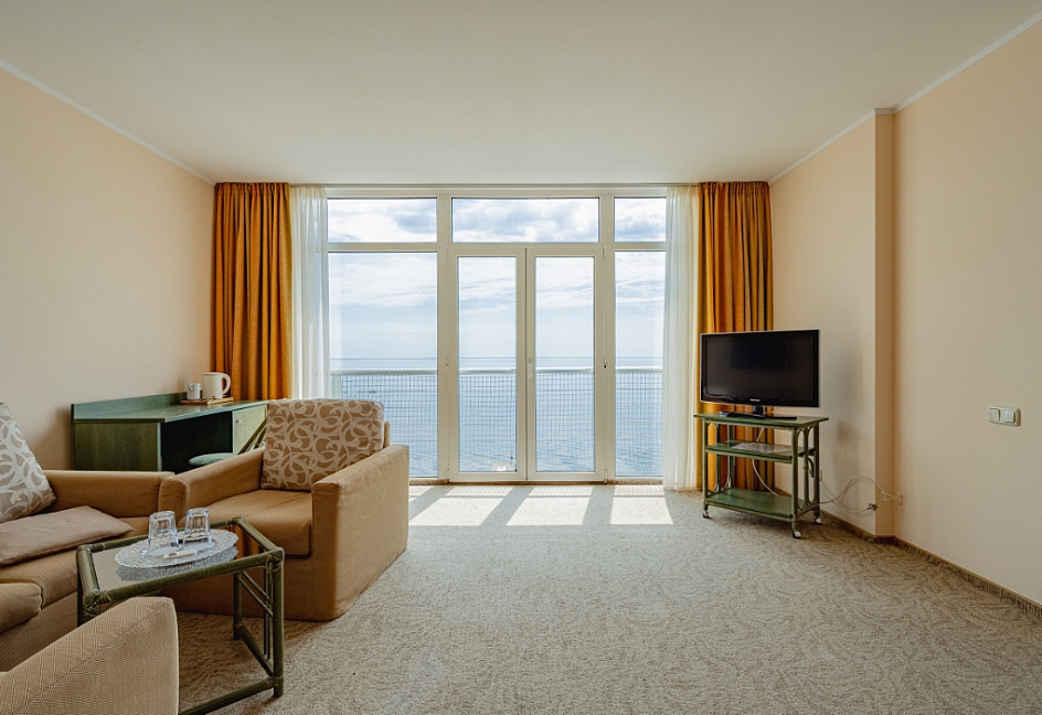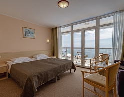 Отель находится в Приморском парке на берегу моря. Подкупили меня утренние виды из окна и ночной шум моря.Обслуживание на высоте.Отличные завтраки и ужины. Ресторан с террасой уютные.Достойный номер,много света,воздуха.