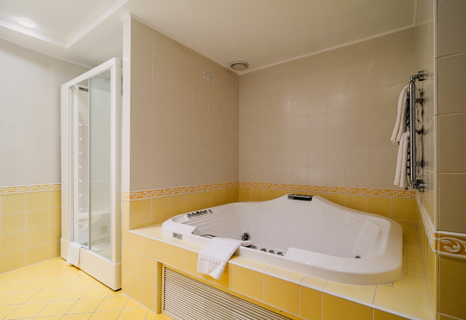 сауна, с джакузи, с душевой кабиной, тапочки, туалетные принадлежности, фен, халат
